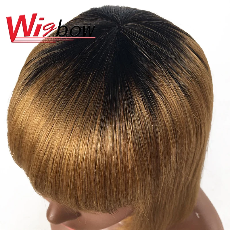 Парик Pixie Cut Bob, перуанские, Омбре, красный, блонд, человеческие волосы, парик с челкой, прямые, короткие, Боб, человеческие волосы, парики для женщин, машинное производство