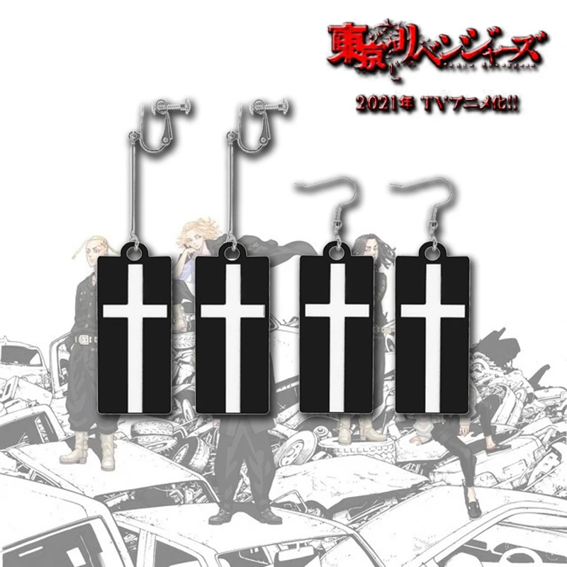 Акриловые серьги в стиле аниме Токио Мстители, Такаси мицуя, подвеска в виде креста, клипсы для косплея для мужчин и женщин