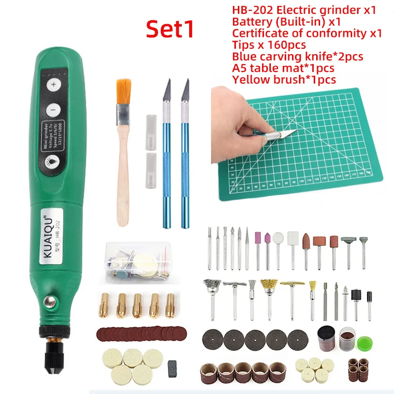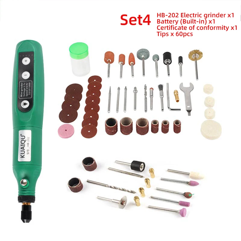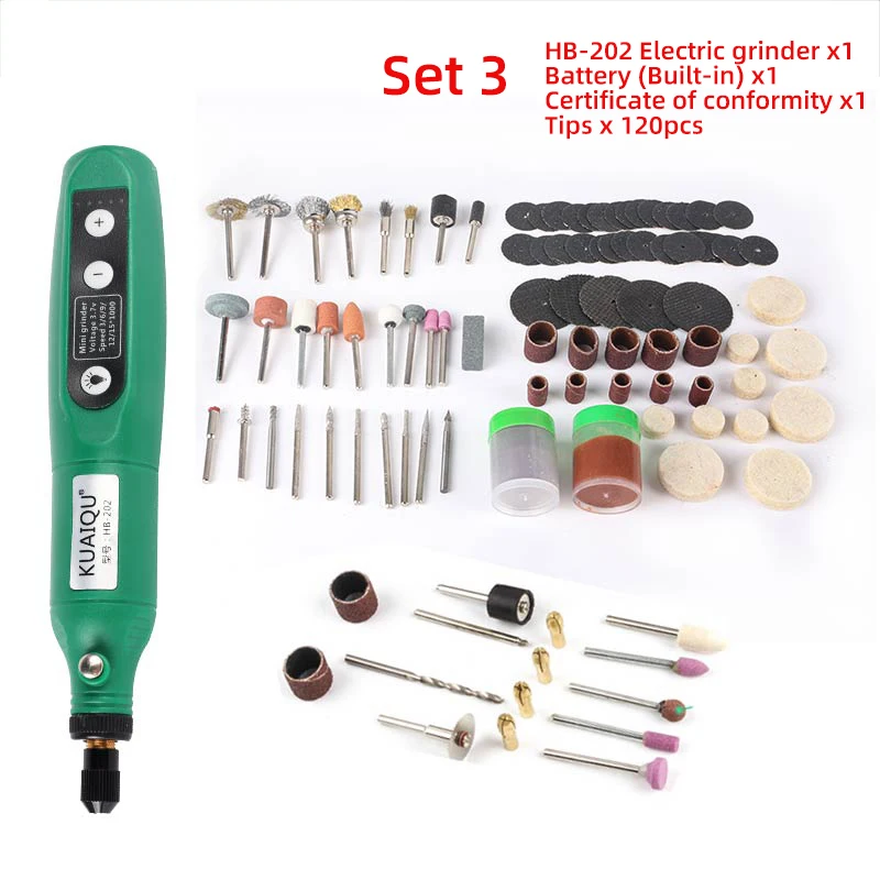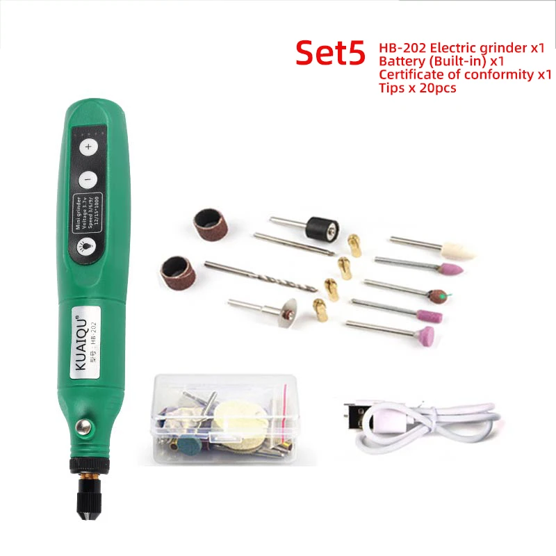 Комплект 1 включает в себяHB-202 электрическая шлифовальная машина x1Аккумулятор (встроенный) x1Сертификат соответствия x1Наконечники x 160 шт.Синий нож для резьбы * 2 шт.Настольный коврик А5*1 шт.Желтая кисть * 1 шт.Комплект 2 включает в себяHB-202 электрическая шлифовальная машина x1Аккумулятор (встроенный) x1Сертификат соответствия x1Наконечники x 160 шт.Комплект 3 включает в себяHB-202 электрическая шлифовальная машина x1Аккумулятор (встроенный) x1Сертификат соответствия x1Наконечники x 120 шт.Комплект 4 включает в себяHB-202 электрическая шлифовальная машина x1Аккумулятор (встроенный) x1Сертификат соответствия x1Наконечники x 60 шт.Комплект 5 включает в себяHB-202 электрическая шлифовальная машина x1Аккумулятор (встроенный) x1Сертификат соответствия x1Наконечники x 20 шт.