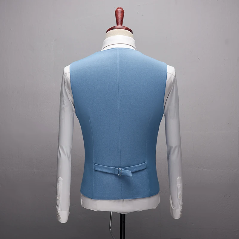 Модные синие вечерние трикотажные смокинги для жениха на свадьбу, 3 предмета, официальный Выпускной костюм, блейзер для вечеринки, мужской облегающий костюм на заказ, 2021