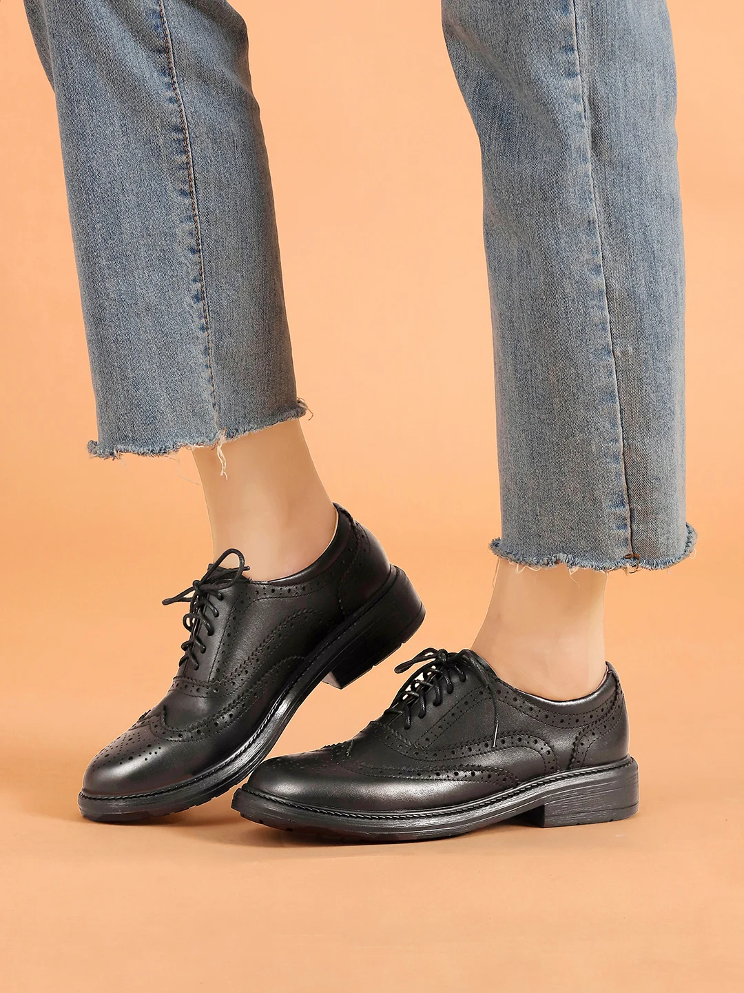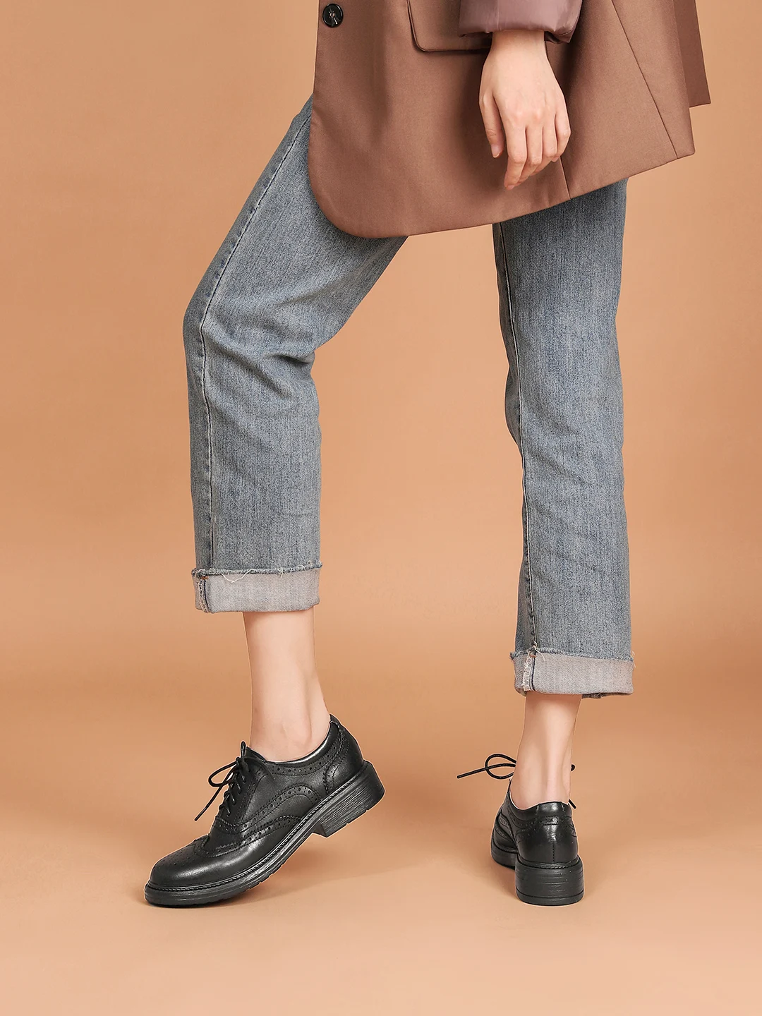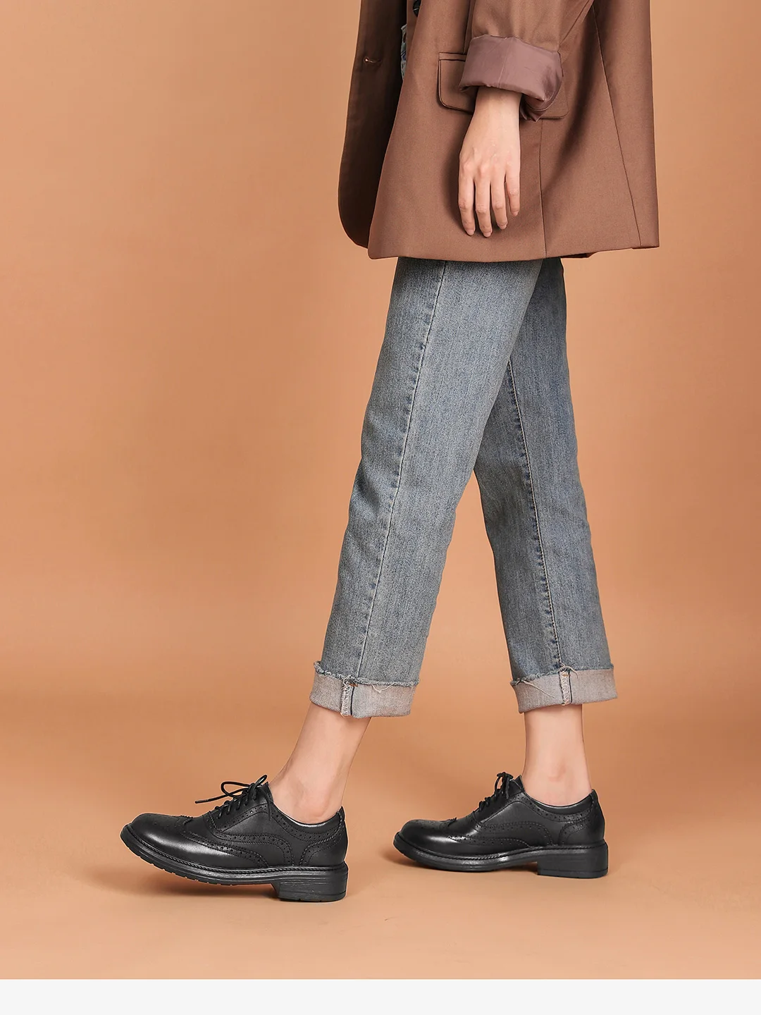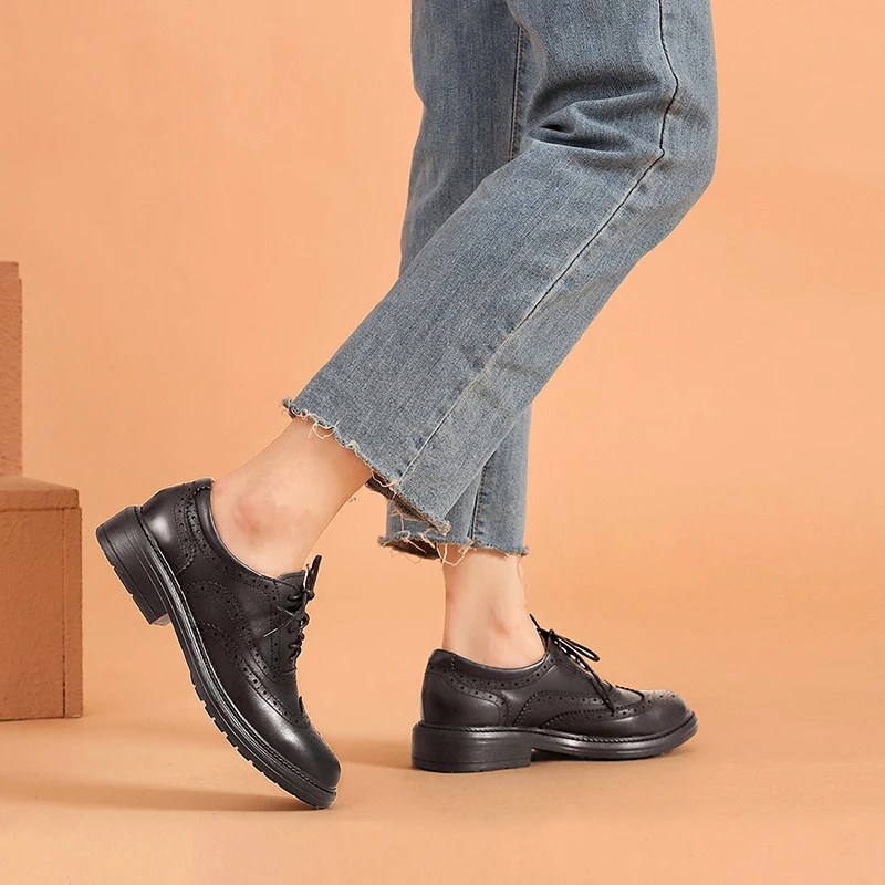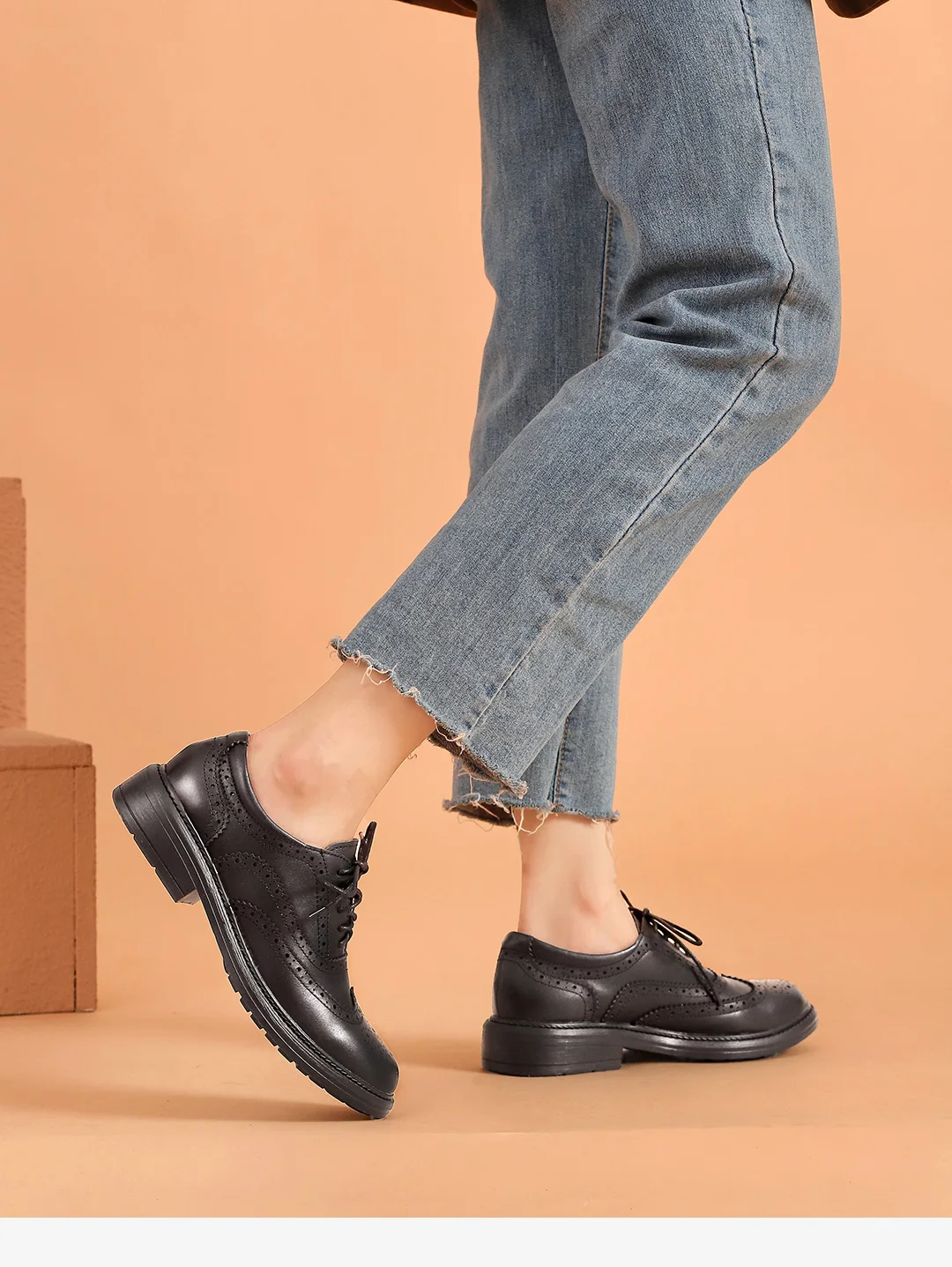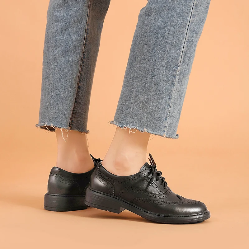 Женские туфли-оксфорды на шнуровке Donna-in, винтажные туфли из телячьей кожи с перфорацией и круглым носком, осень 2021