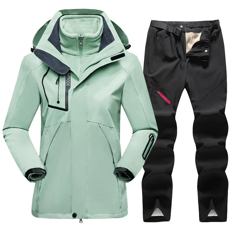 Лыжная куртка и брюки для женщин 2 в 1 плотный теплый лыжный костюм ветрозащитная Водонепроницаемая зимняя одежда брендовые зимние лыжные куртки для сноуборда