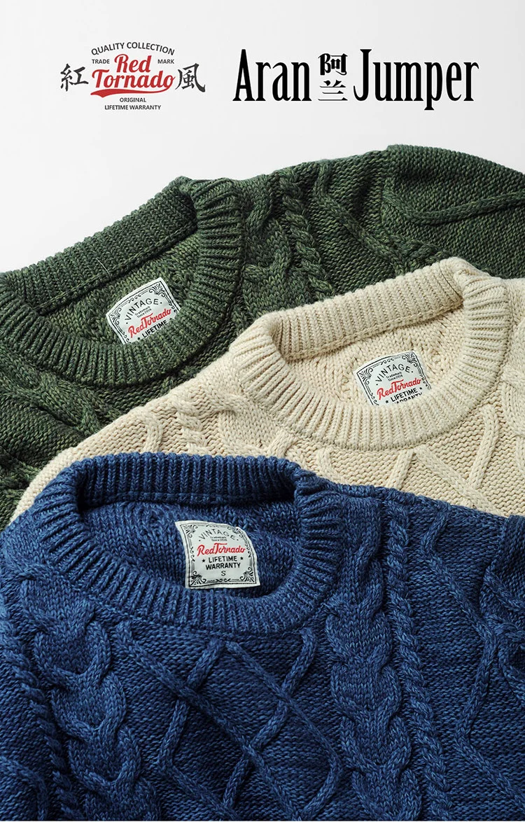 Красный джемпер Tornado Aran, Мужской трикотажный свитер из 100% хлопка с круглым вырезом