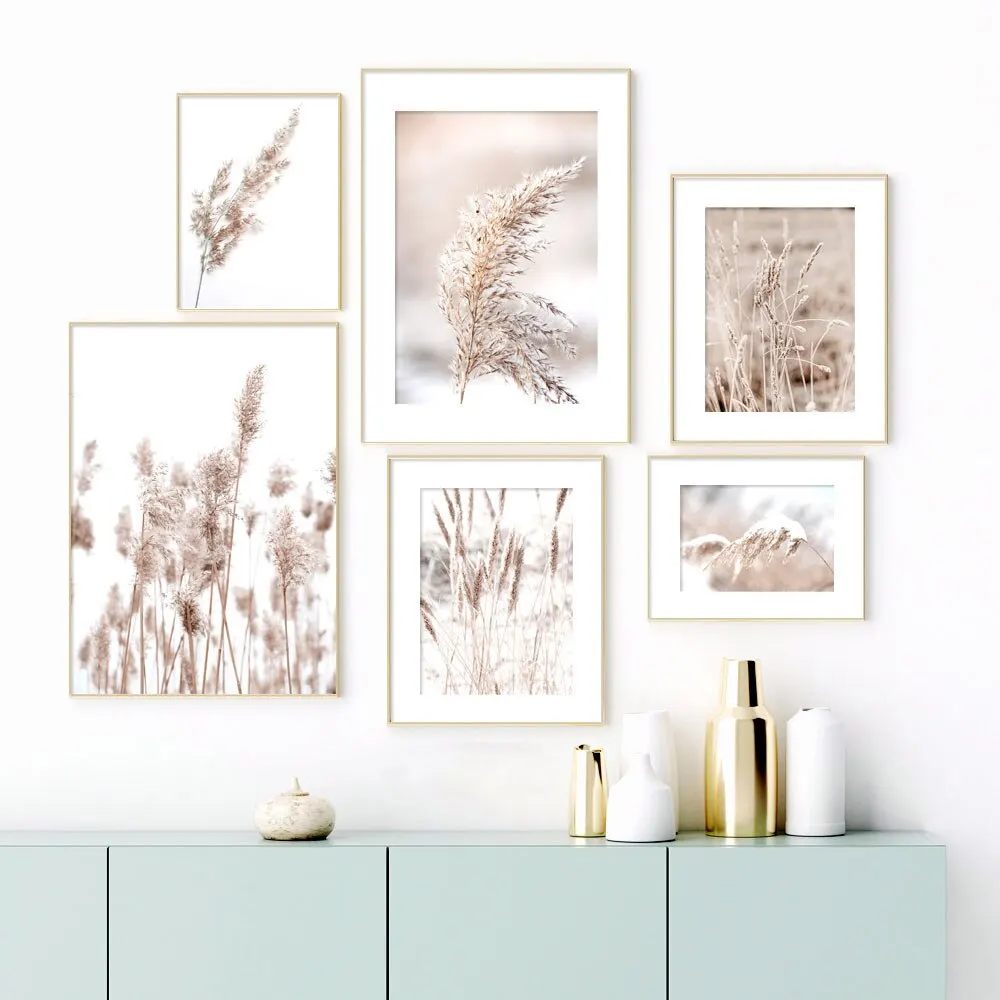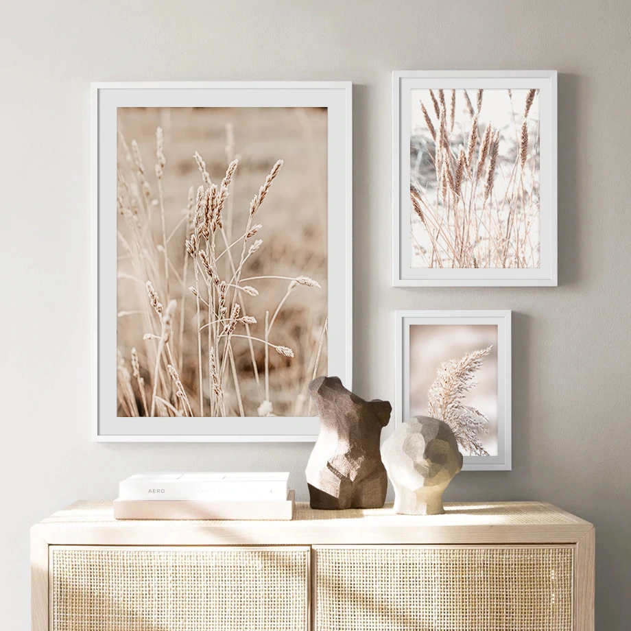 Настенная живопись, холст, бежевый тростник, сушеные цветы, плакаты...