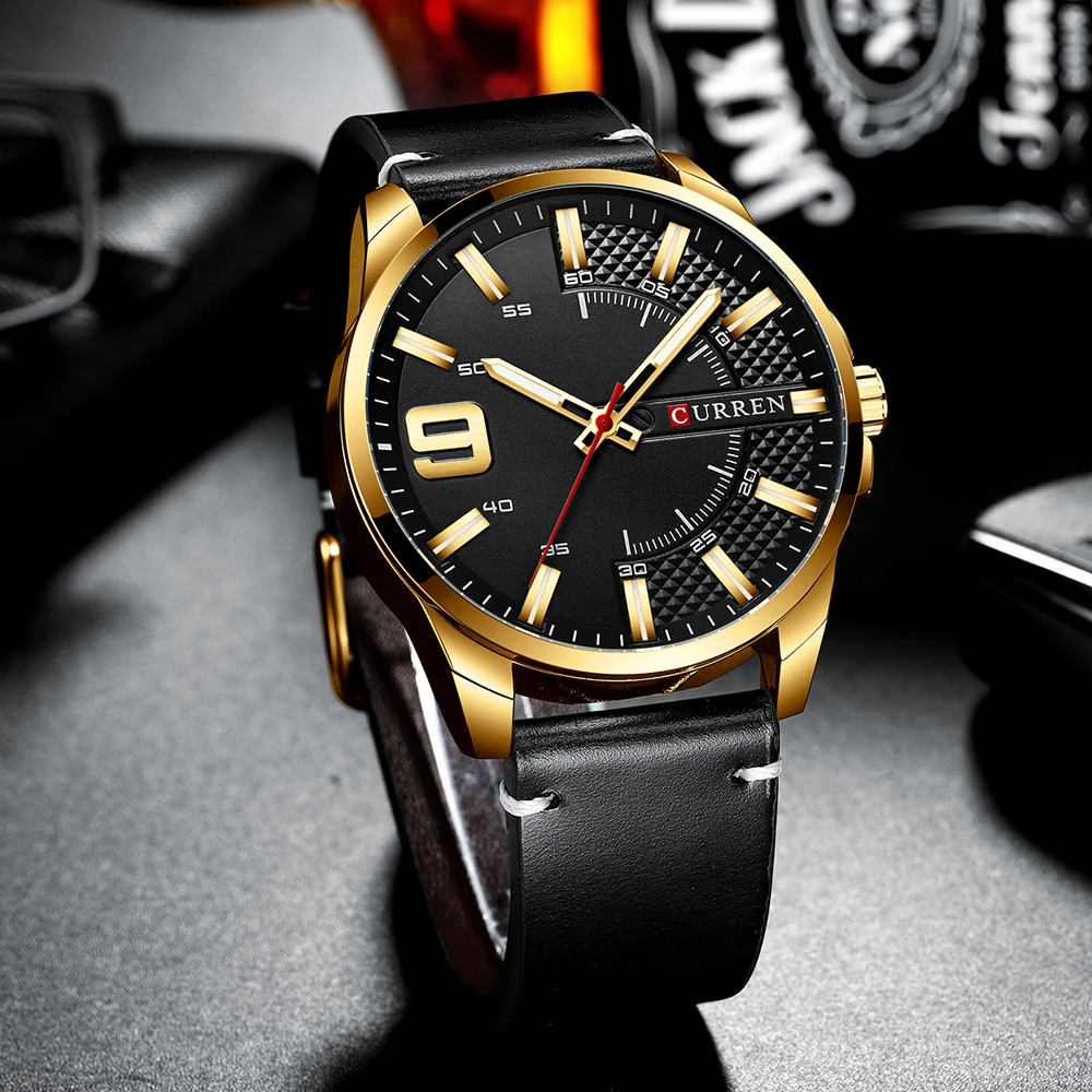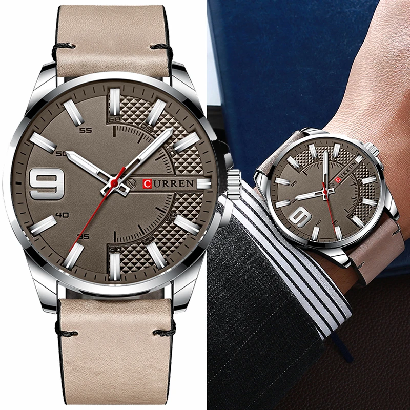 Часы Мужские CURREN, водонепроницаемые, с календарем, с кожаным рем...