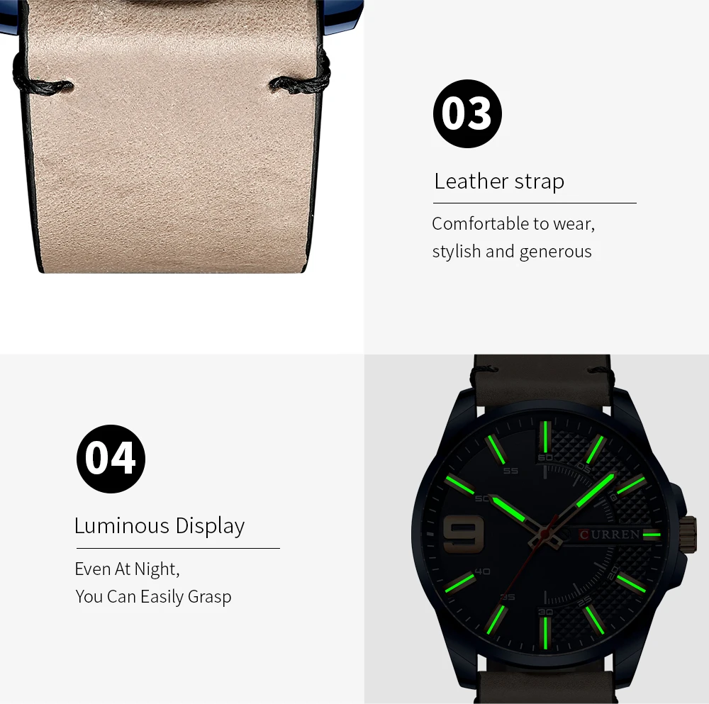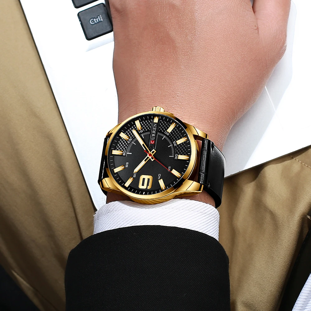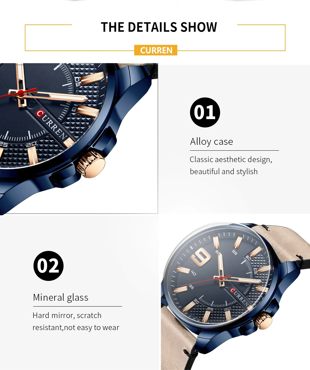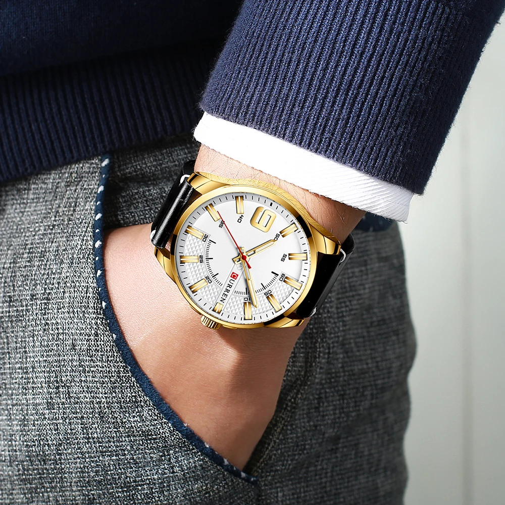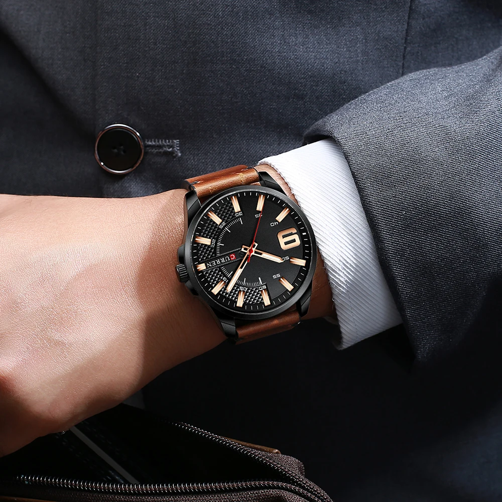 Часы наручные CURREN мужские кварцевые, модные спортивные роскошные деловые повседневные светящиеся в стиле милитари, с кожаным ремешком