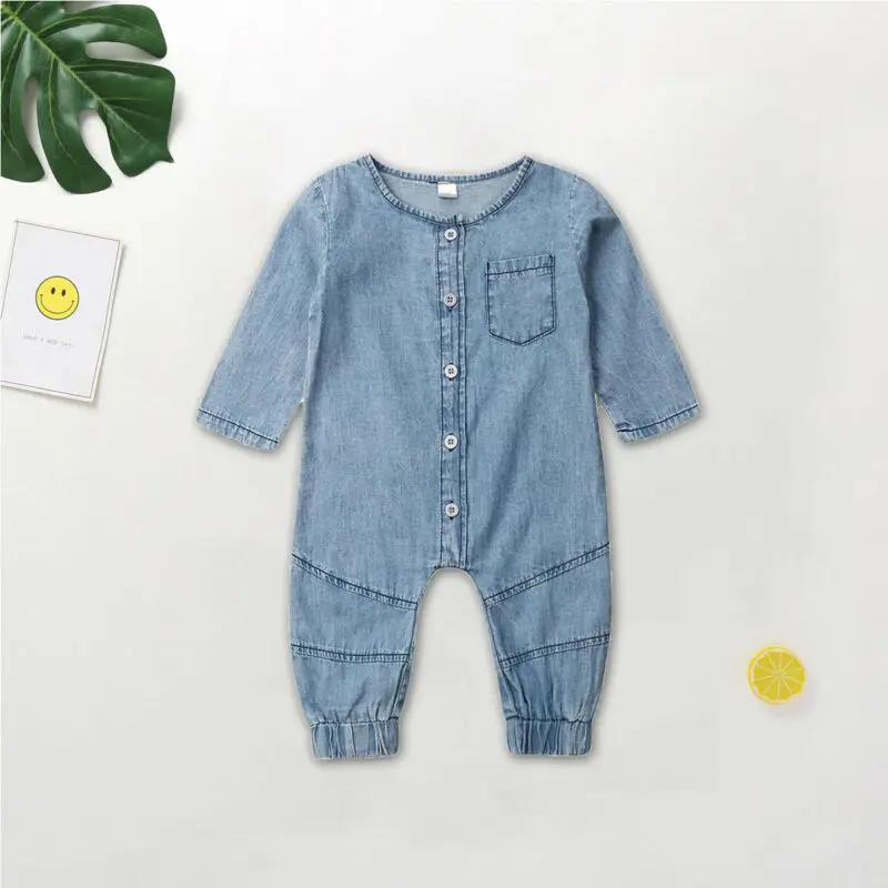 Джинсовый комбинезон с длинным рукавом для новорожденных 0-24 м