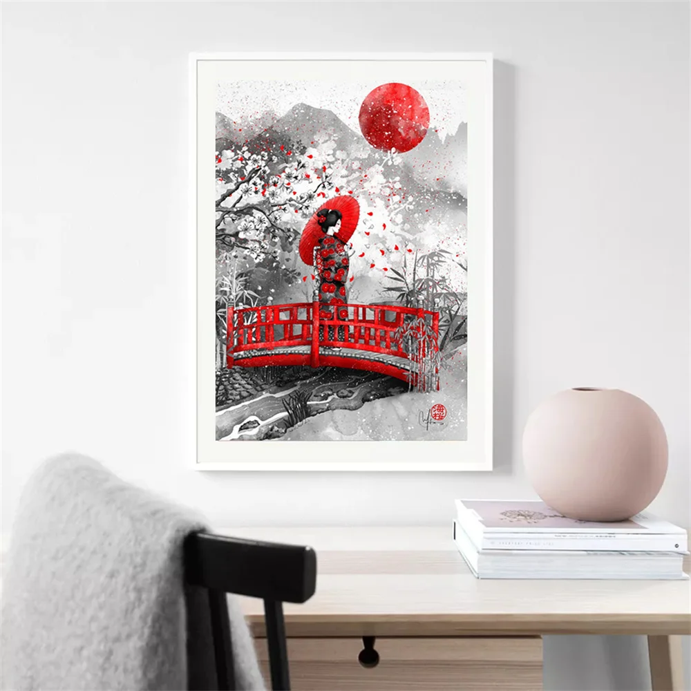 Японских гейш холст со скандинавскими мотивами плакат современные п...
