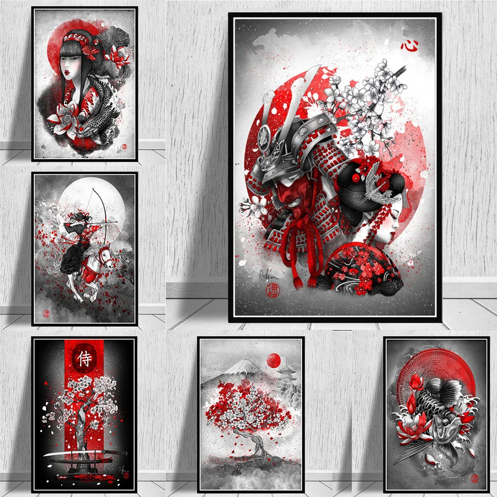 Японские постеры самурая, HD Печать на холсте, современное настенно...