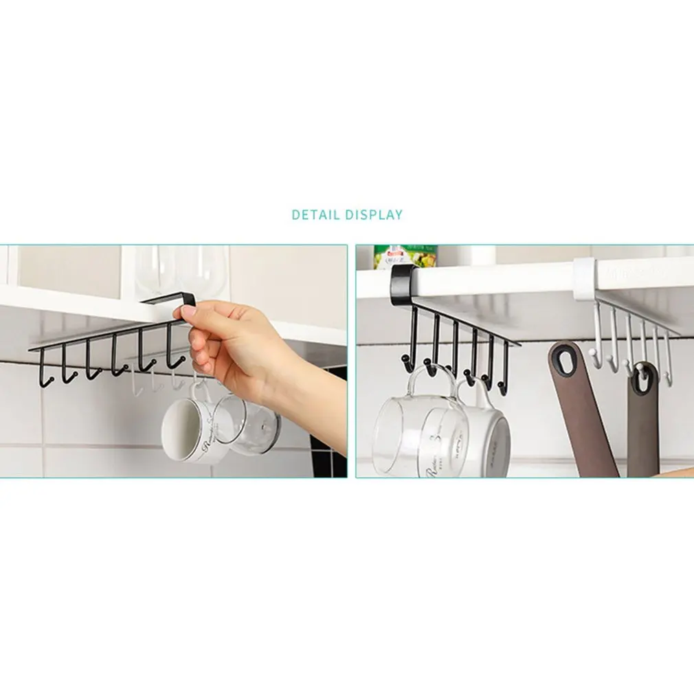 2021 Лидер продаж, модный, 6 крючков, металлическая подставка под полку, кружку, чашку, кухонный шкаф, органайзер, подвесная стойка, держатель, крючок