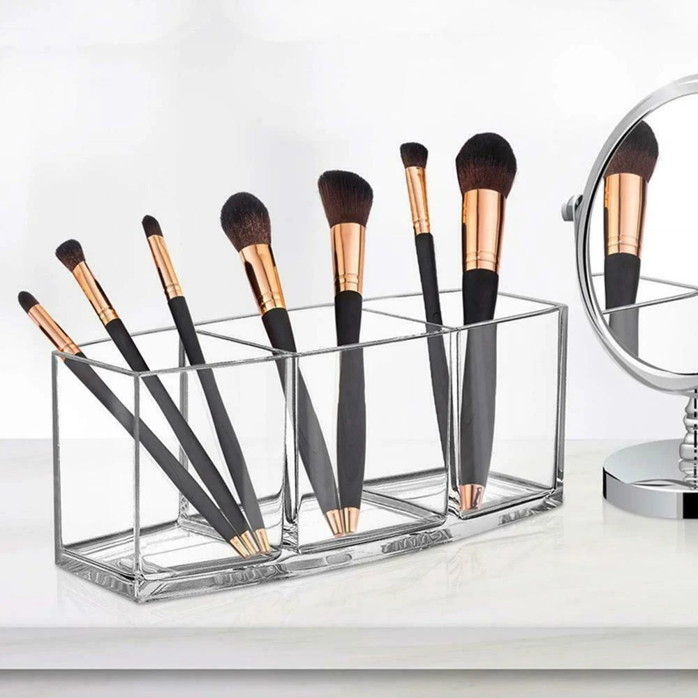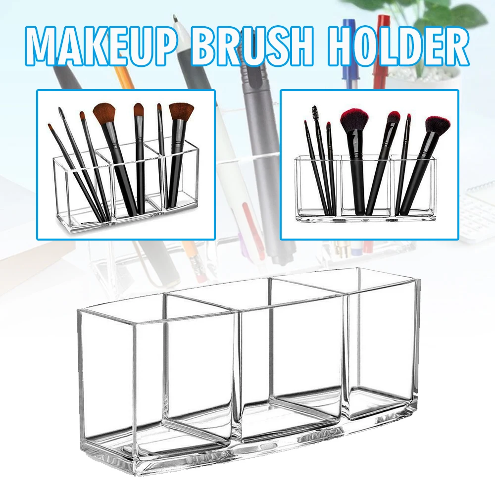 Прозрачная коробка для хранения косметических кистей с 3 отверстиями, акриловый держатель для помад, прочная коробка для ювелирных изделий, контейнер, органайзеры для макияжа
