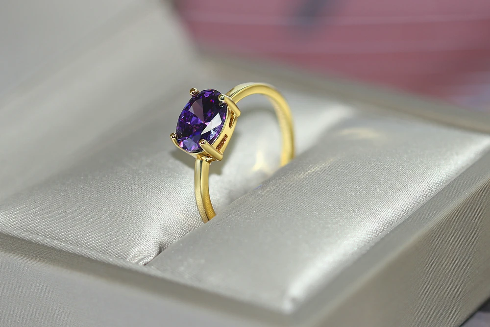 Обручальное кольцо для женщин, простой классический овальный камень карамельного цвета с цирконом, светильник-золотого цвета, обручальные подарки, Модная бижутерия R865