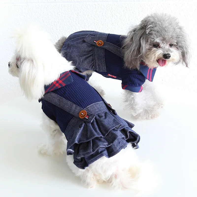 Одежда для девочек и собак, платье, комбинезон для мальчиков, зимний теплый костюм для пары домашних животных, костюм для щенков, померанского чихуахуа, пуделя, джинсовая одежда для маленьких собак с юбкой