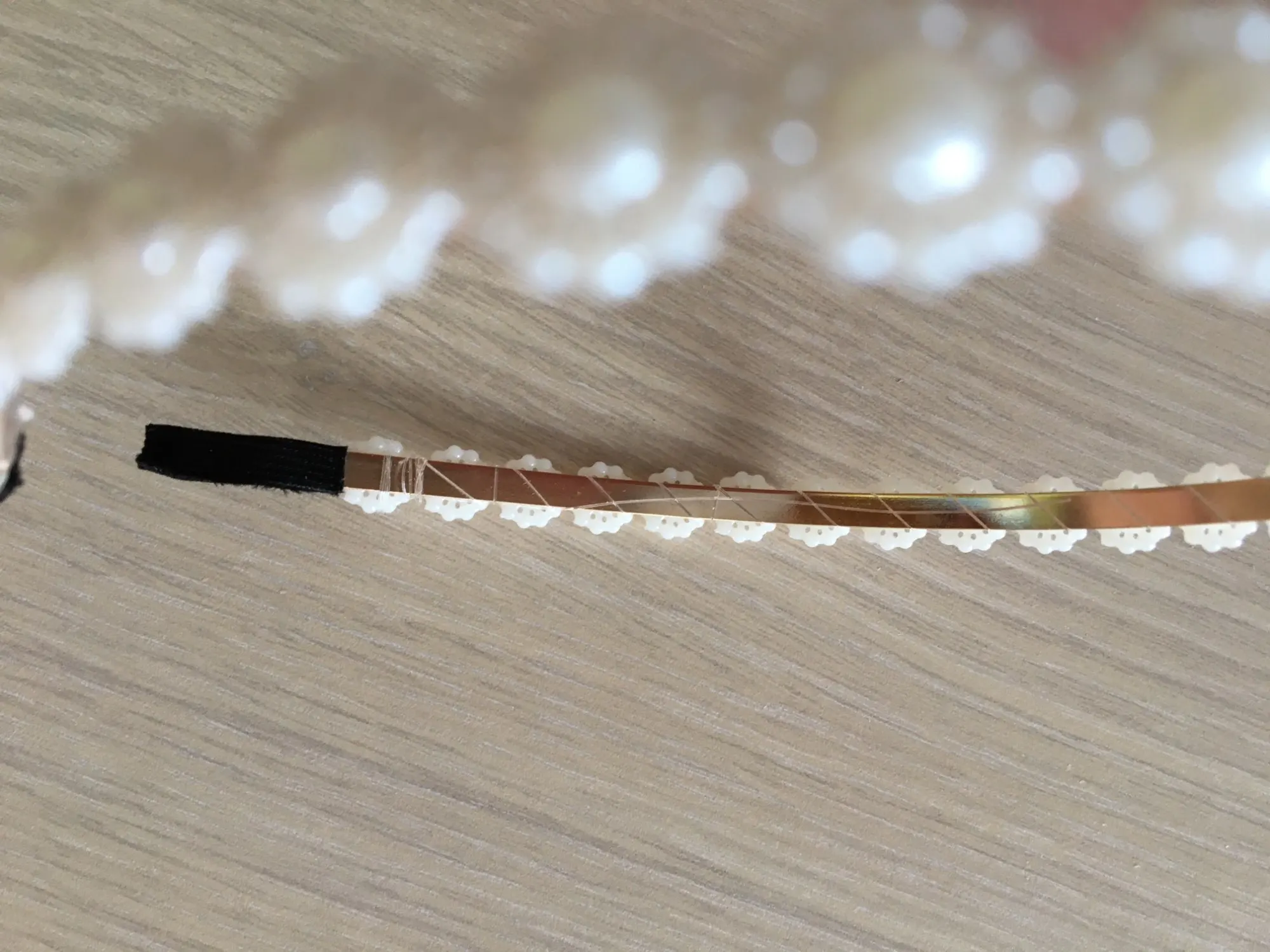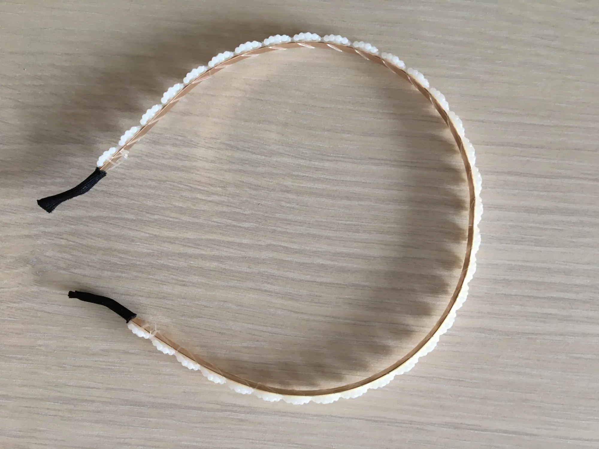 Заказ пришёл быстро. На вид ободок симпатичный. Но выполнен на троечку. Основа ободка - очень легко гнущийся металл золотисто-бронзового цвета. Верхняя часть ободка в виде ленты из пластиковых цветов крепко держится за счёт лески. На концах ободка леска не очень аккуратно привязана, при снятии ободка волосы за неё цепляются. Носить его не хочется. С покупкой ободка поторопилась. Цена 51,69₽. Вроде недорого, но жалко потраченных денег. Лучше заказать дороже по стоимости, но более качественную вещь