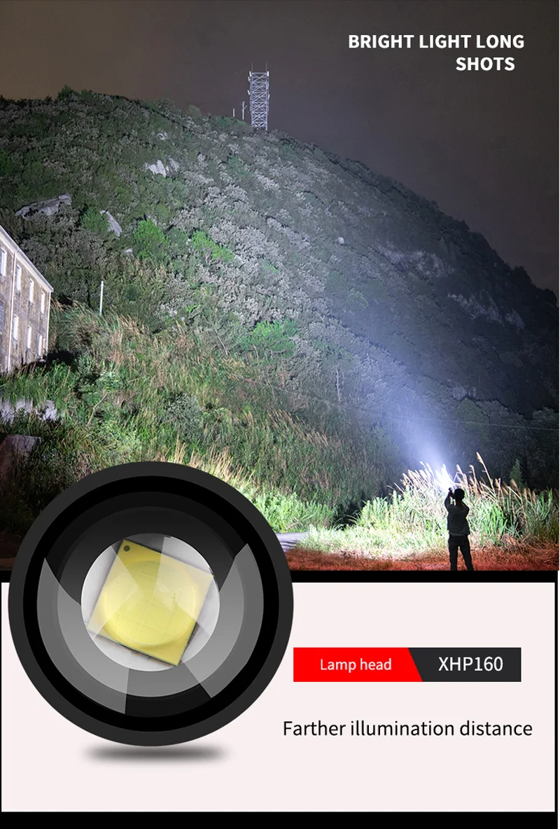 Ультра мощный XHP160 светодиодный фонарик Xlamp USB Перезаряжаемый Фонарь 18650 26650 высокомощная вспышка