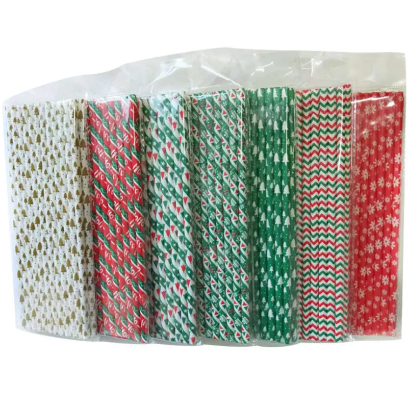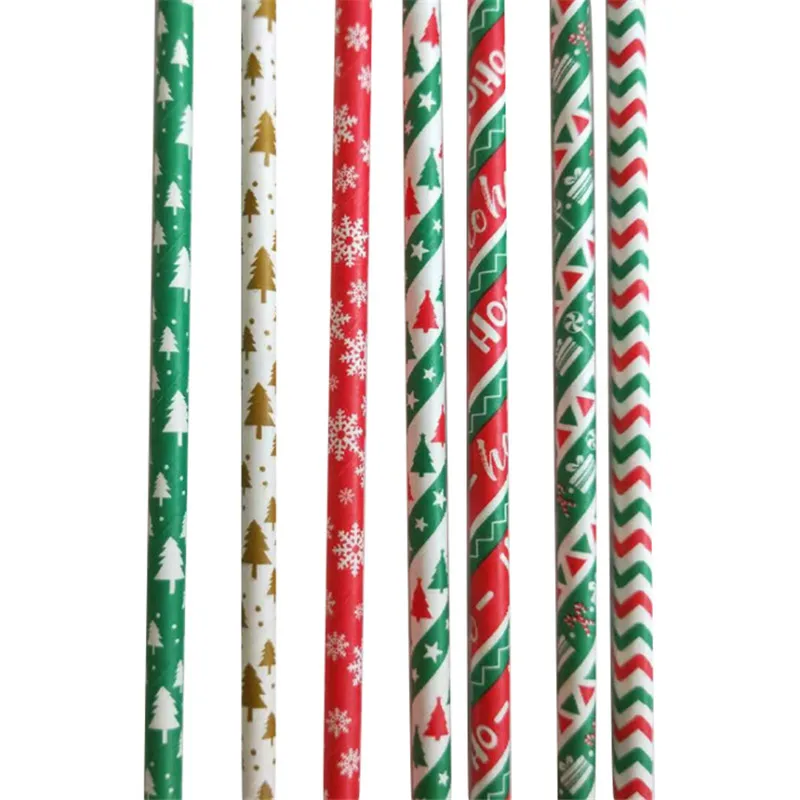 Рождественские одноразовые биоразлагаемые соломинки из крафт-бумаги...