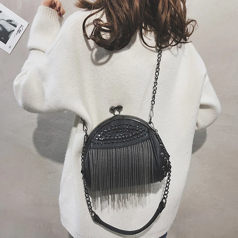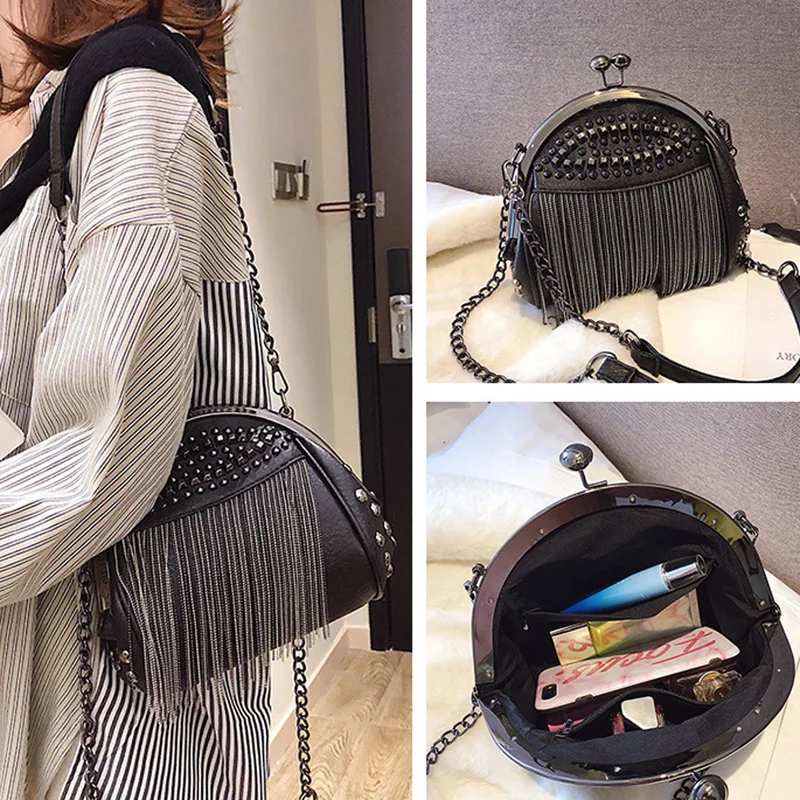 Annmouler дизайнерская женская сумка через плечо с подвеской на цепочке, сумка через плечо в стиле панк, черная сумка, кошелек, маленькая сумка-тоут с кисточкой