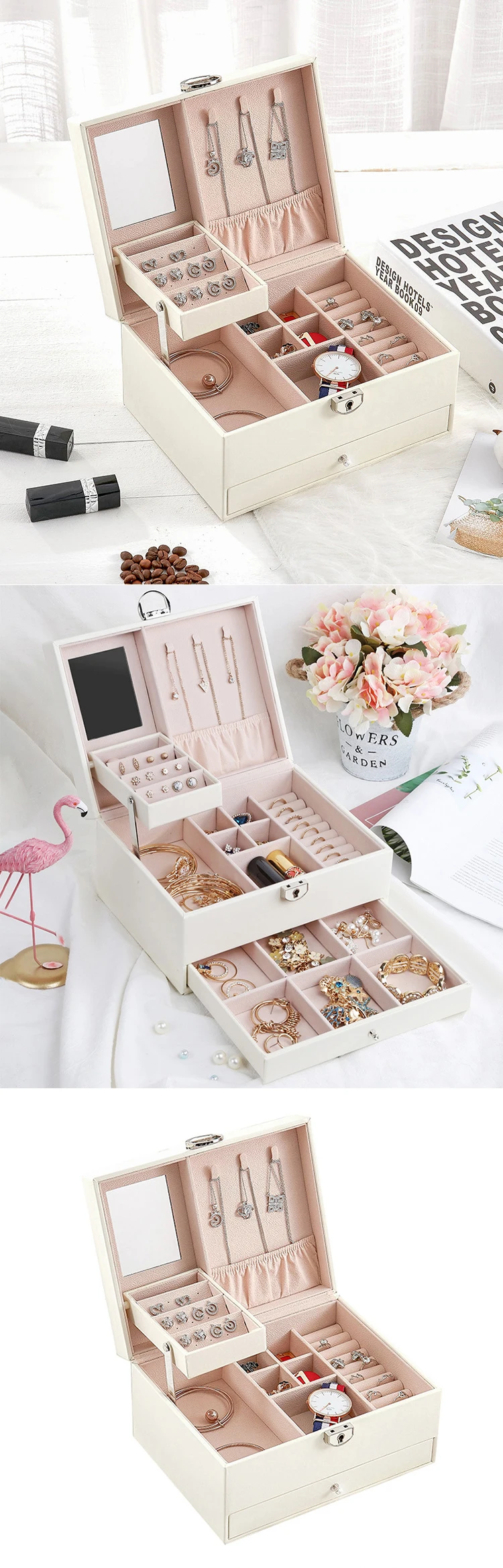 Шкатулка для ювелирных украшений, многофункциональный органайзер большой емкости для косметики, дорожная шкатулка для косметики