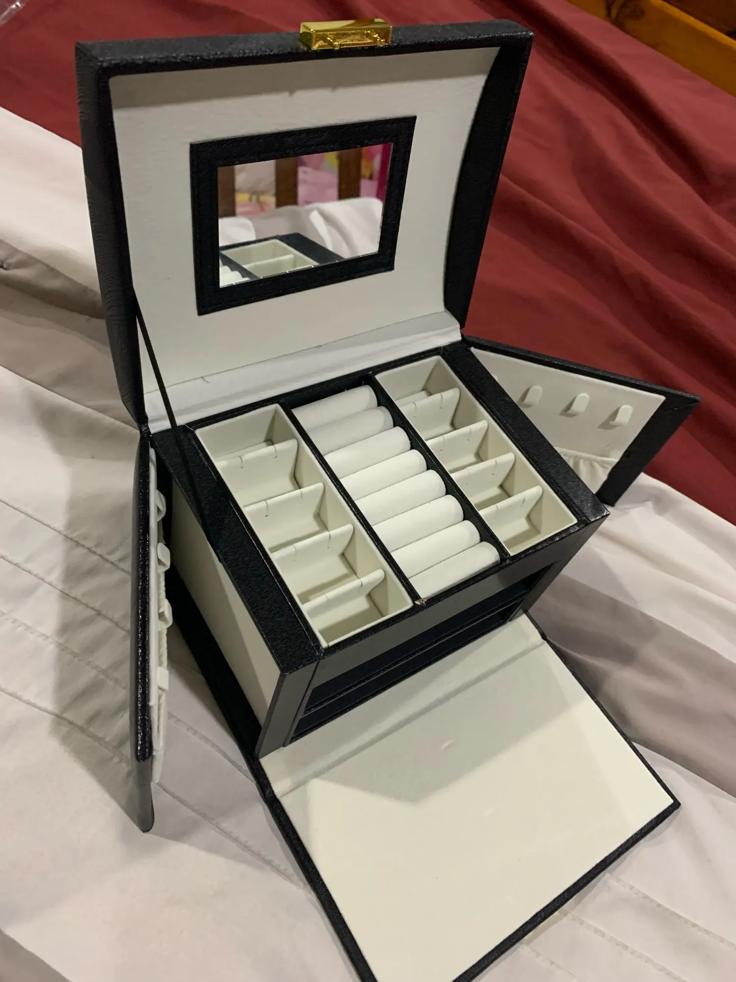 Информация о продукте Название продукта: коробка для ювелирных изделий большой емкости Цвет: черный/белый Материал: искусственная кожа Параметры: 17,5*13,5*12 см Пожалуйста, обратите внимание Из-за ручного измерения размер изделия может иметь погрешность от 1 до 2 см. Из-за различных мониторов цвет может немного отличаться. Изображение продукта