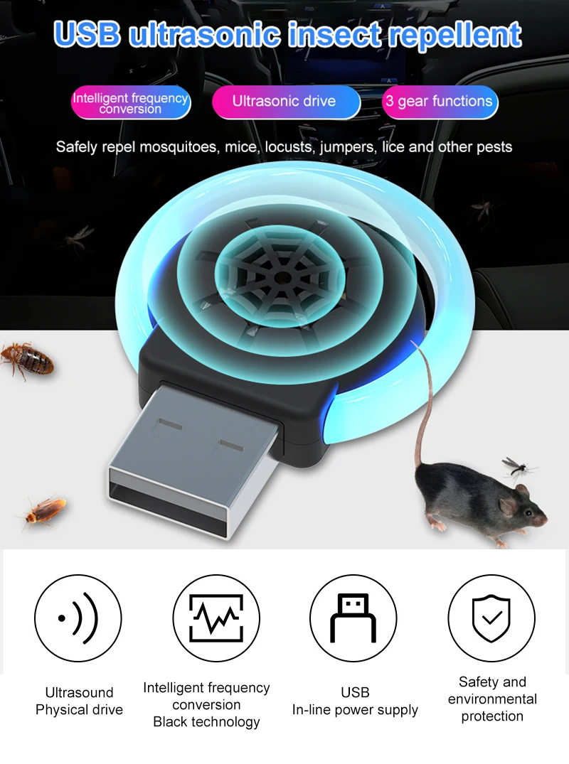 1. Ультразвуковая волна, излучаемая этим продуктом, оказывает сильное влияние на вытеснение мышей, комаров и тараканов. Он нетоксичный, безвкусный и не влияет на людей и домашних животных