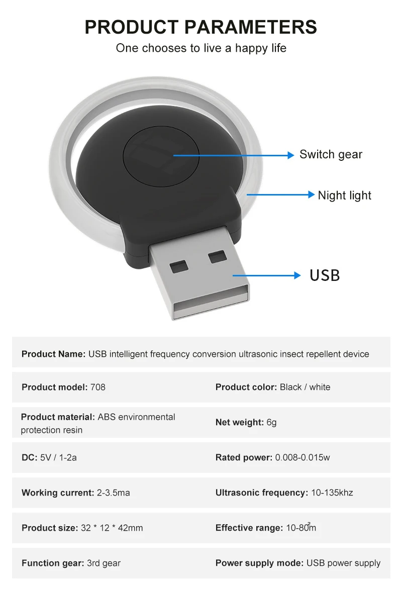 Особенности продукта: (8-band ультразвуковой бесконечного цикла сканирование) ультразвуковой физической изоляции клещами, блохами, мыши и комаров, без химических веществ, безопасной езды на автомобиле. В то же время, продукт работает и Светильник Освещает ночной Светильник цвета и атмосферный светильник.