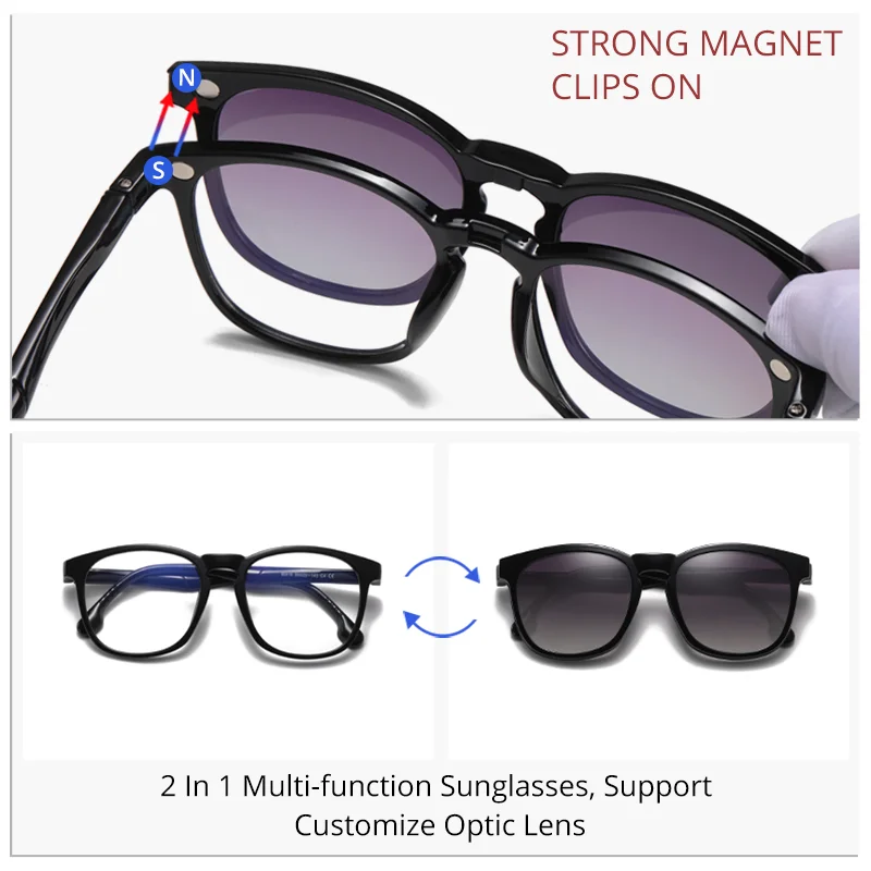 2 в 1, магнитные солнцезащитные очки Ralferty, женские, квадратные, с застежкой, UV400, поляризационные, с пружинным шарниром