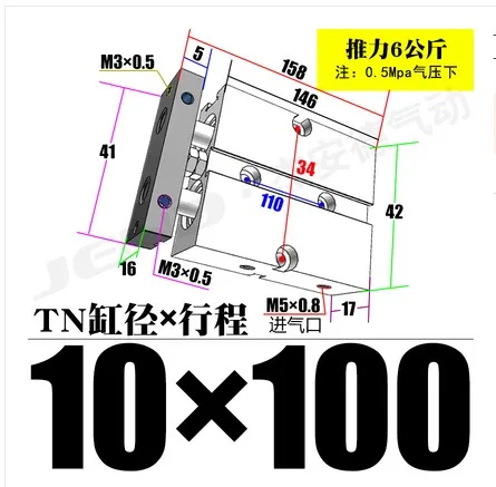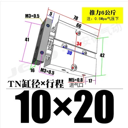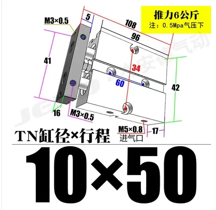 Пневматический цилиндр типа TN из алюминиевого сплава, 10 мм, отверстие 1015202530354045506070758090100125150 мм воздушный цилиндр