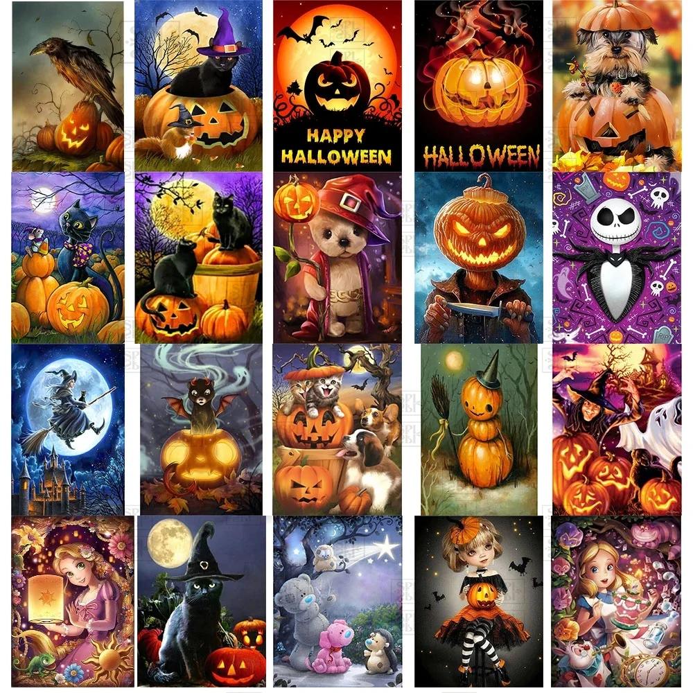 5D алмазная живопись, мультфильм, тыква, сделай сам, круглая квадратная Алмазная вышивка, Набор для вышивки крестиком, Хэллоуин, украшение для дома, детский подарок