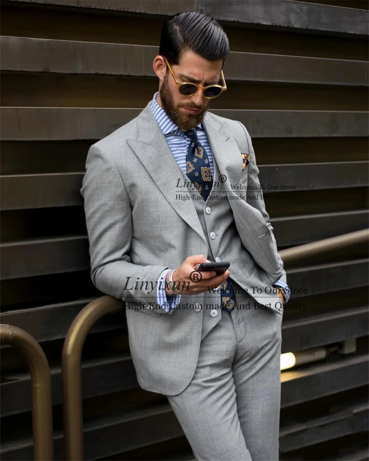 Костюм мужской из пиджака, жилета и штанов, серого цвета