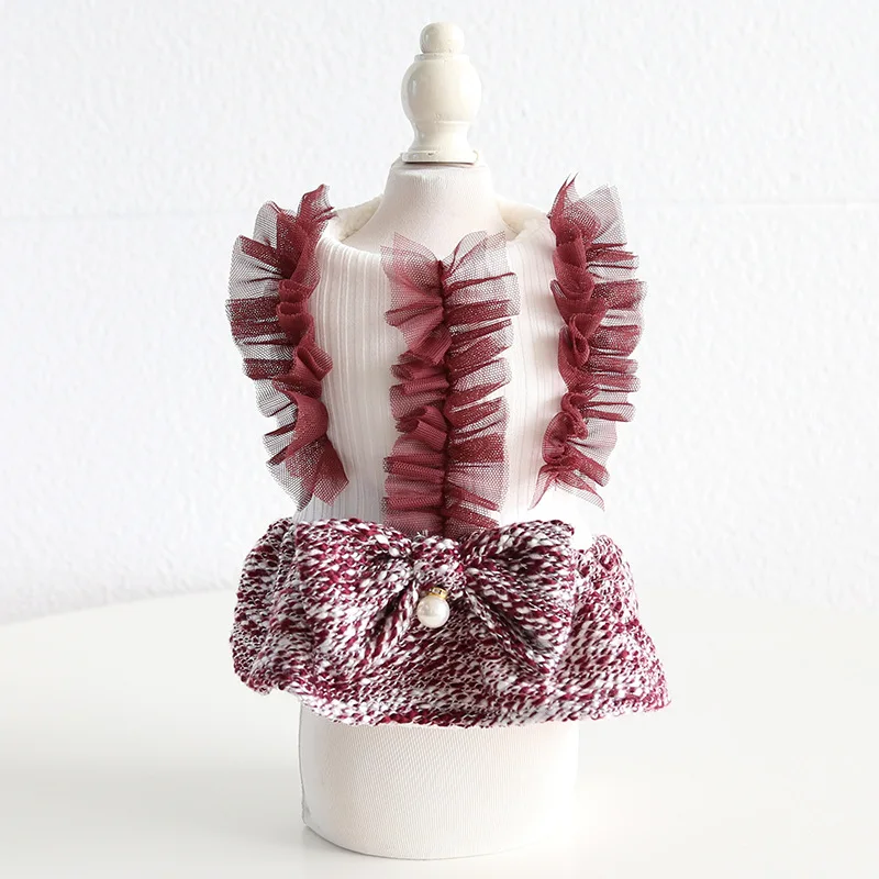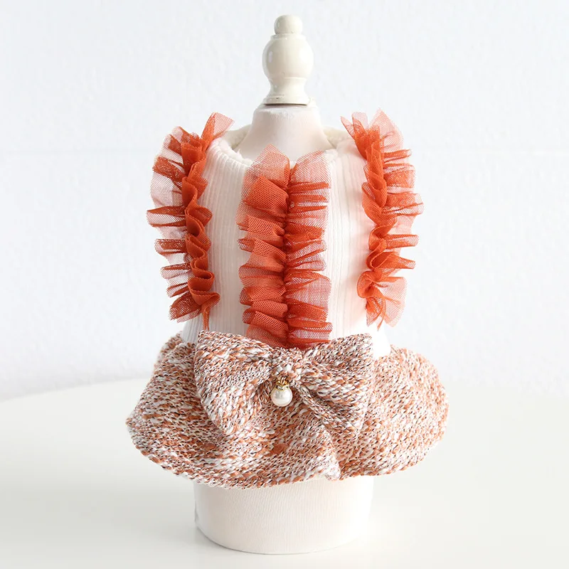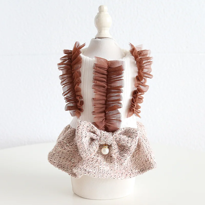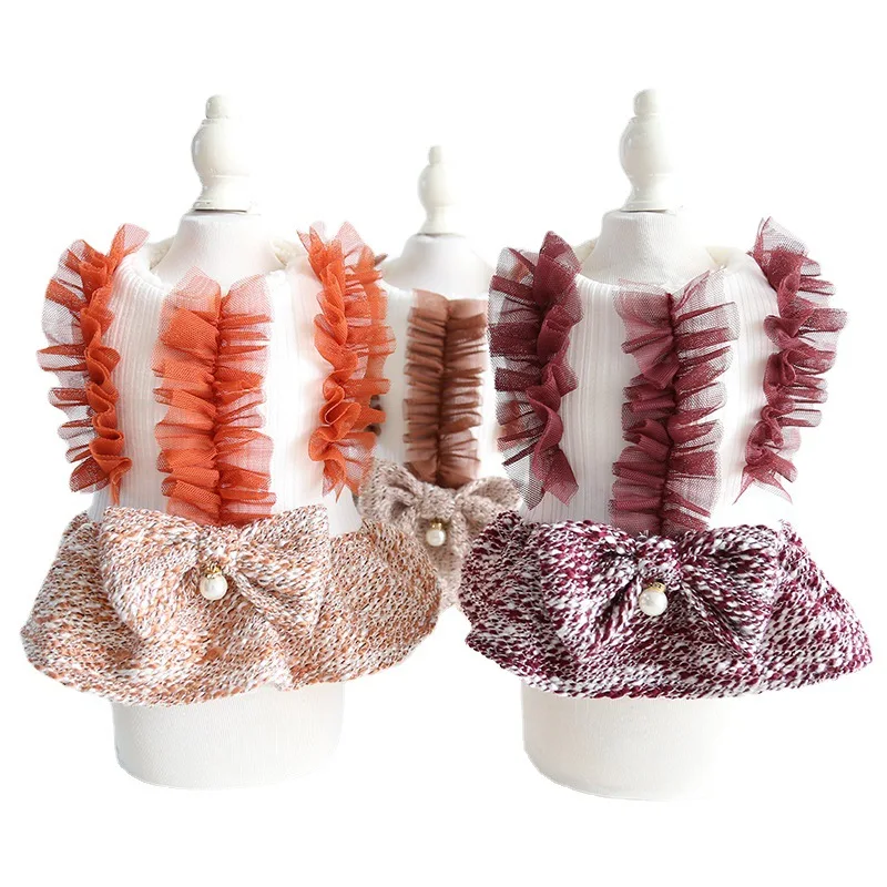Женская зимняя одежда для собак, милый кружевной жемчужный женский ...