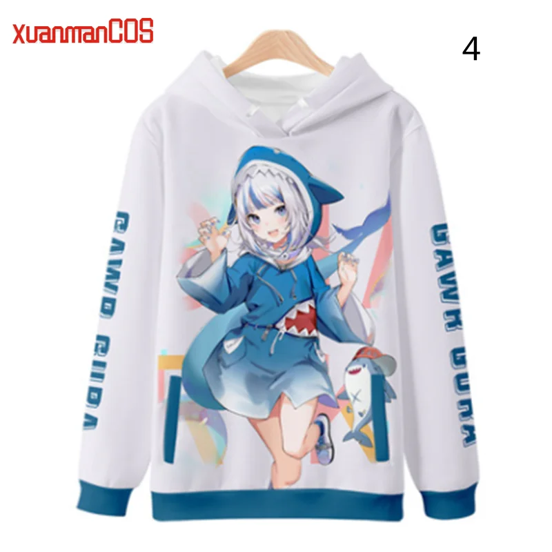 Костюм для косплея аниме Hololive YouTuber Gawr Gura, повседневные худи, свитшот, пальто, осенняя Свободная куртка унисекс