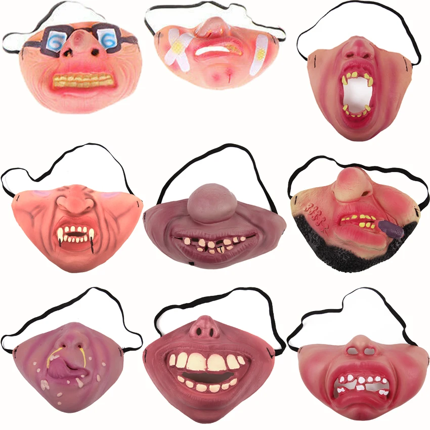 Ужасные латексные маски для лица, маска клоуна для взрослых, реквизит для косплея Joy, Юмористическая эластичная лента, половина лица, маски для хэллоуивечерние, украшение