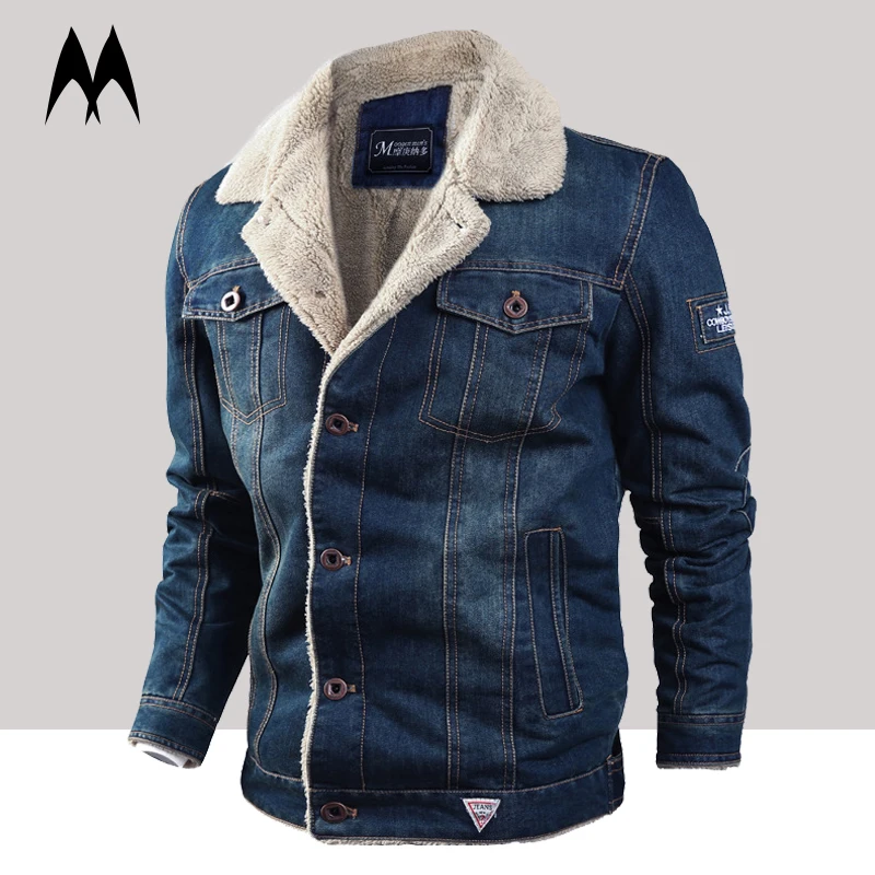Мужская джинсовая куртка, зимняя куртка-бомбер в стиле милитари, с ...