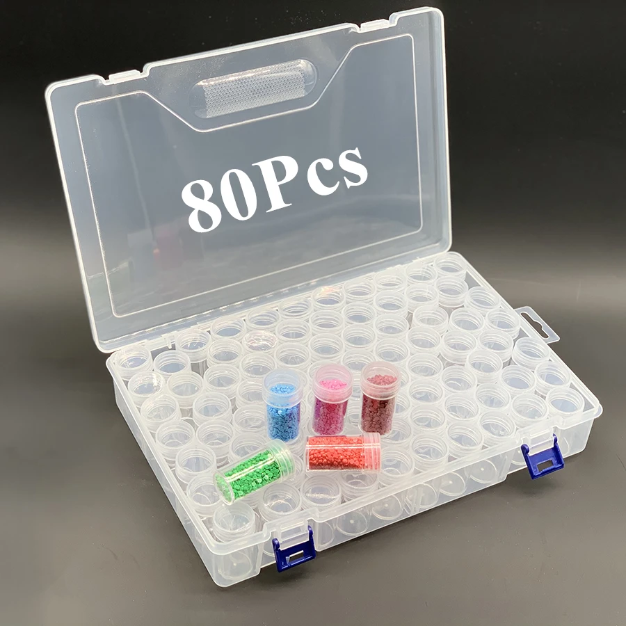 Коробка для хранения Коробка для алмазной живописи | Алмазов картина коробка для хранения 60 | Алмазов картина складная коробка для хранения | Алмазов картина коробка для хранения 80 Бутылок | 64 Сетка Коробка для хранения алмазов картина | Наклейки