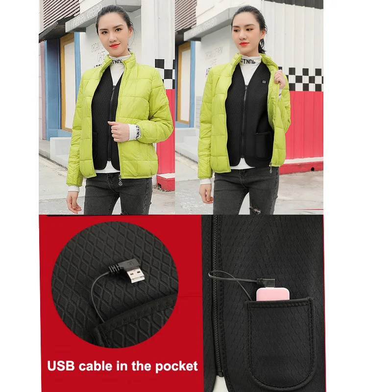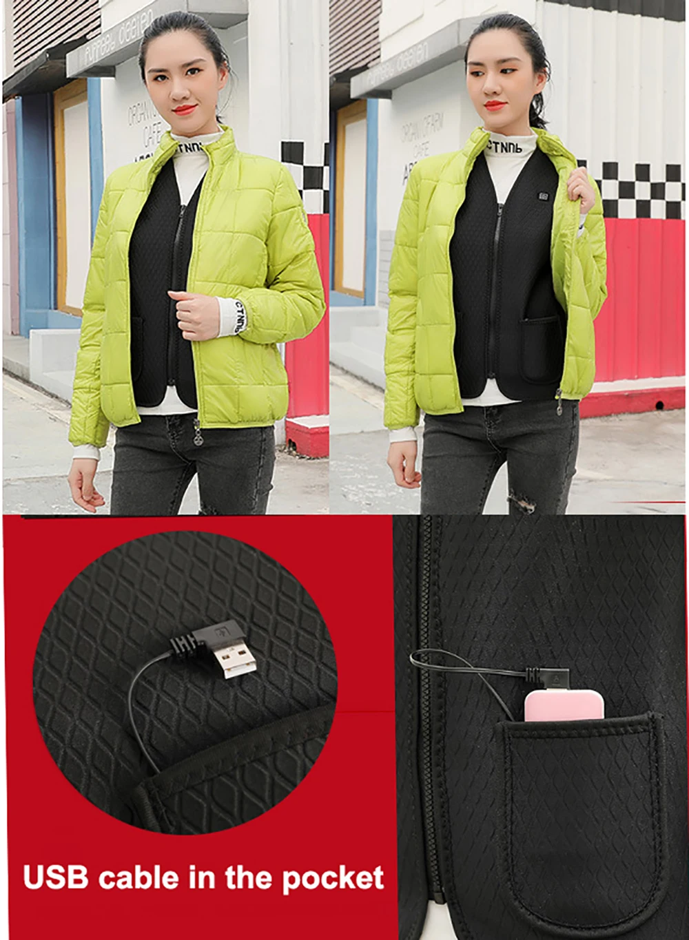 Жилет с электрическим подогревом, куртка с USB подогревом, зимняя куртка для женщин и мужчин, терможилет с V-образным вырезом, женский жилет