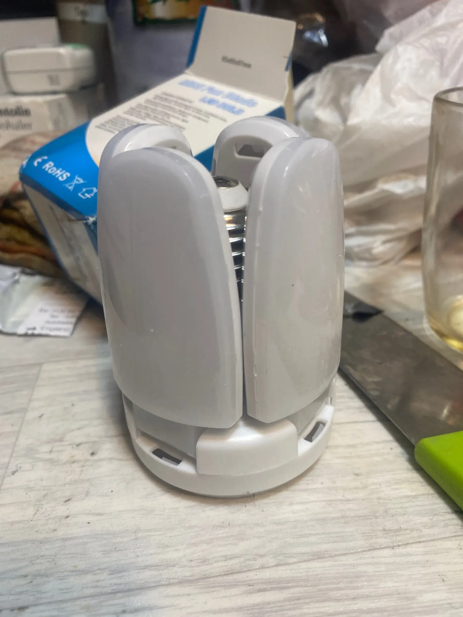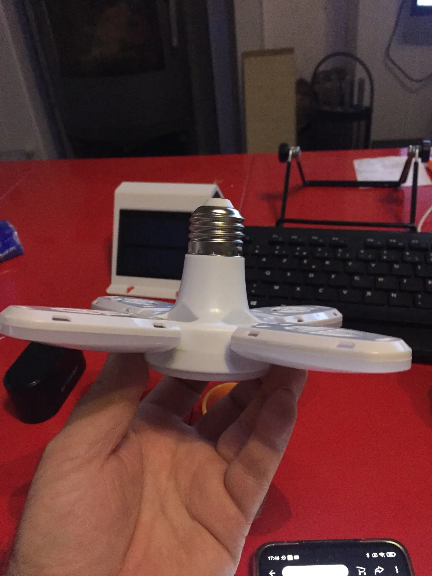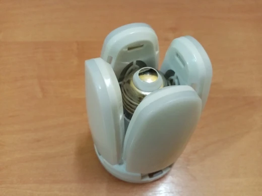 Я думал она будет больше и ярче. В принципе она яркая, но маловата осветить то что мне нужно. В настольный светильник не полезла из-за конструкции крыльев, хотя света над столом она выдаёт предостаточно.