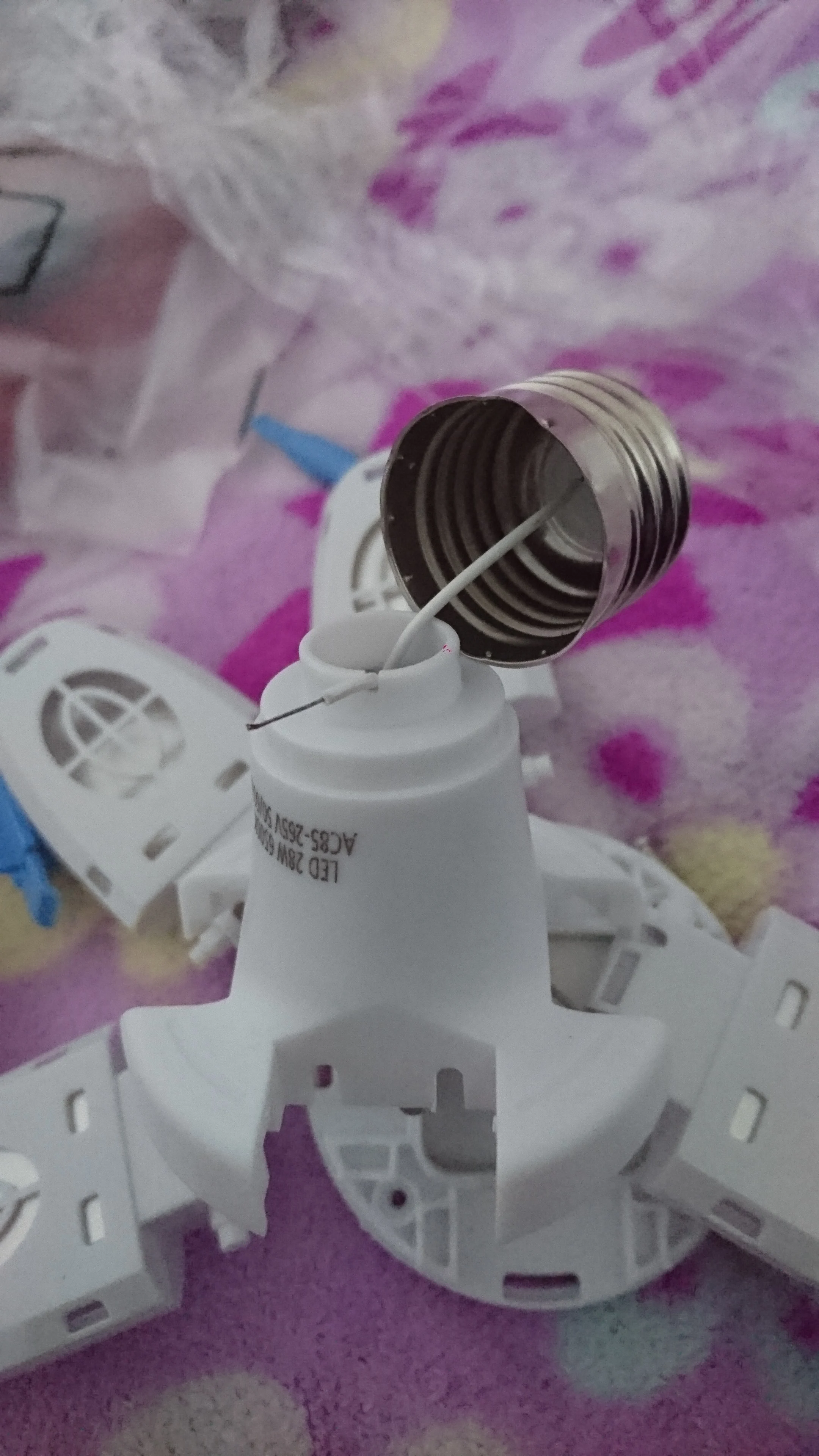 Получил быстро. Есть небольшие потертости. Светит явно не на 28W. от силы на 15! Сильно греются лепестки. Думаю, скоро придется ремонтировать.
