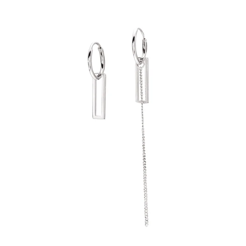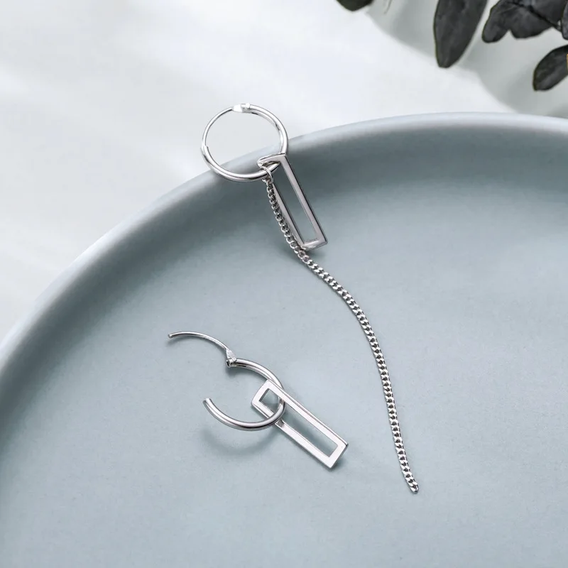 Ассиметричные прямоугольные серьги S925, серебряные серьги, модные серьги, простые серьги с кисточками, длинные женские серьги