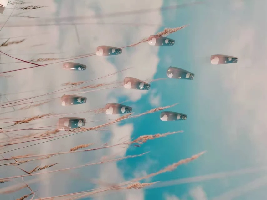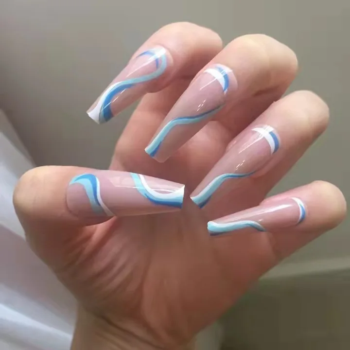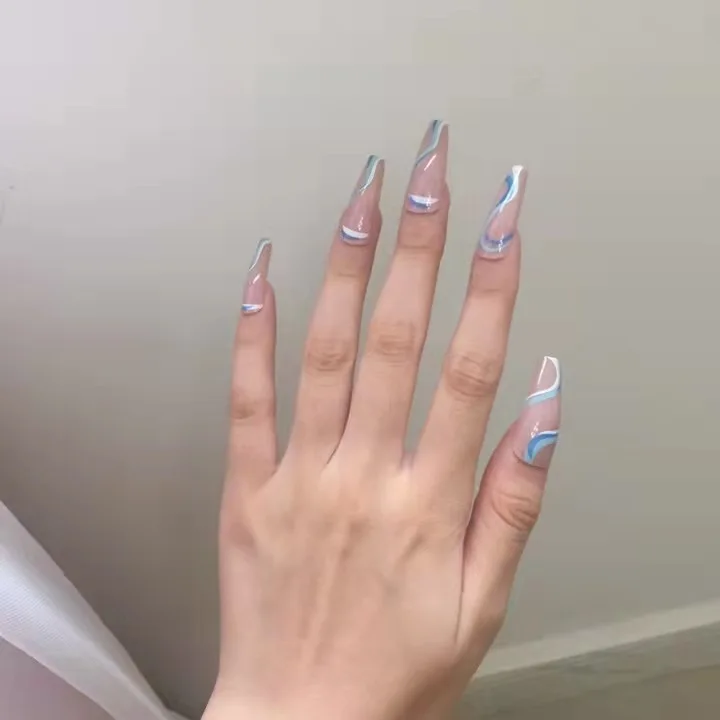 Съемные Длинные накладные ногти в гробе с дизайном, накладные ногти, голубое небо, балерина, носимые накладные ногти с полным покрытием, накладные ногти, 24 шт.