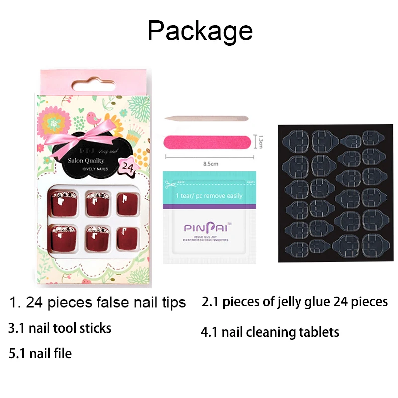Package Includes24pcs/Box False Nail Tips+Press glue