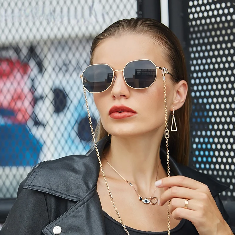 Модные металлические Асимметричные солнцезащитные очки с цепочкой 2021 роскошный бренд Channel модные квадратные солнцезащитные очки для женщин Шикарные очки