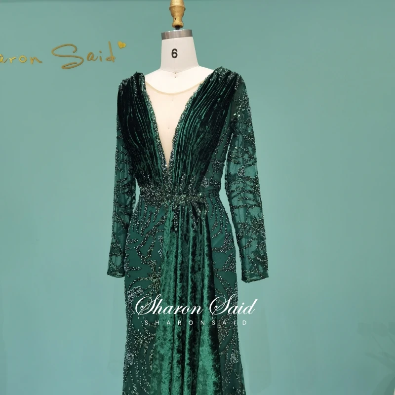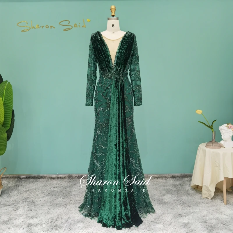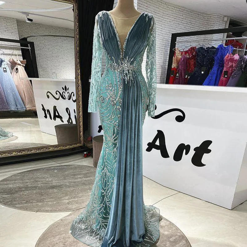 Бирюзовое синее бархатное вечернее платье-Русалка с длинным рукавом, роскошные платья Дубая для официальвечерние ринки, арабское женское платье для гостей свадьбы, 2021