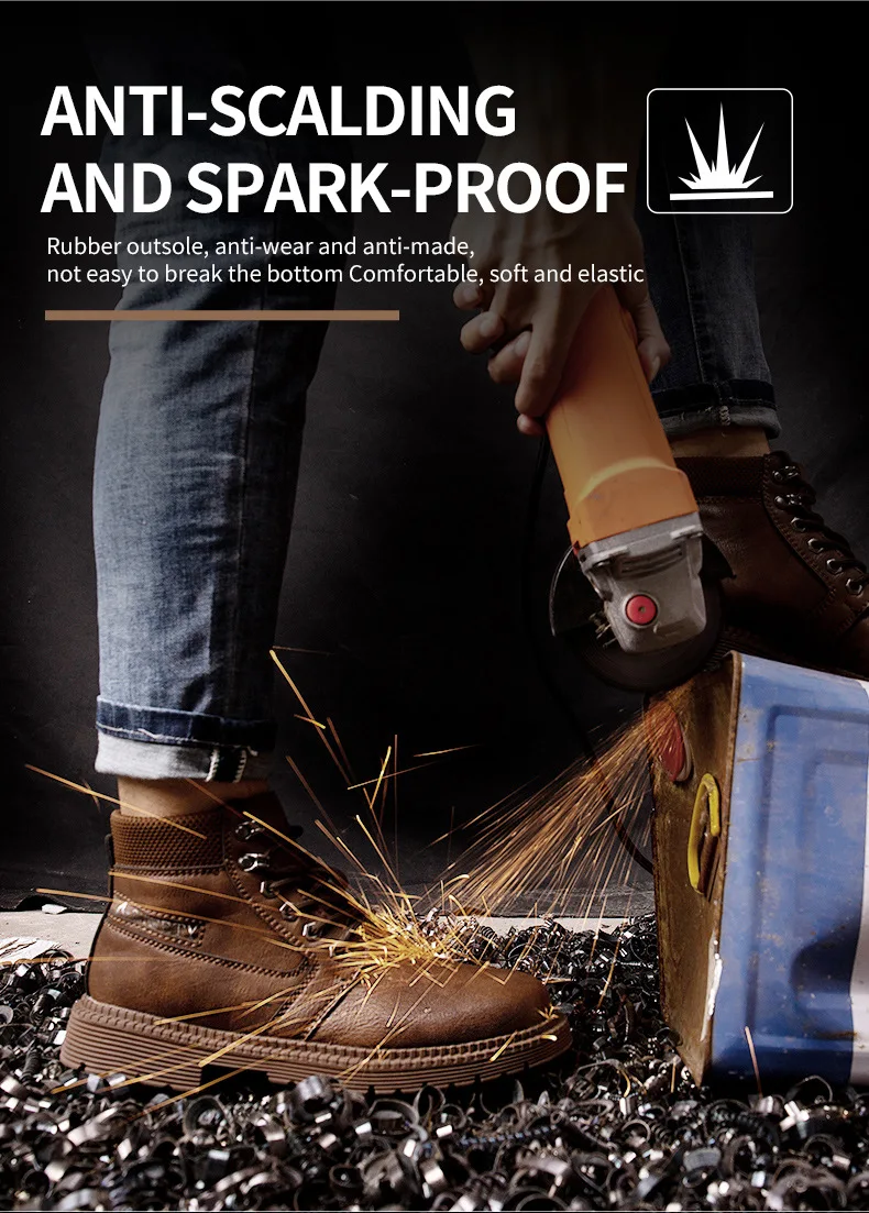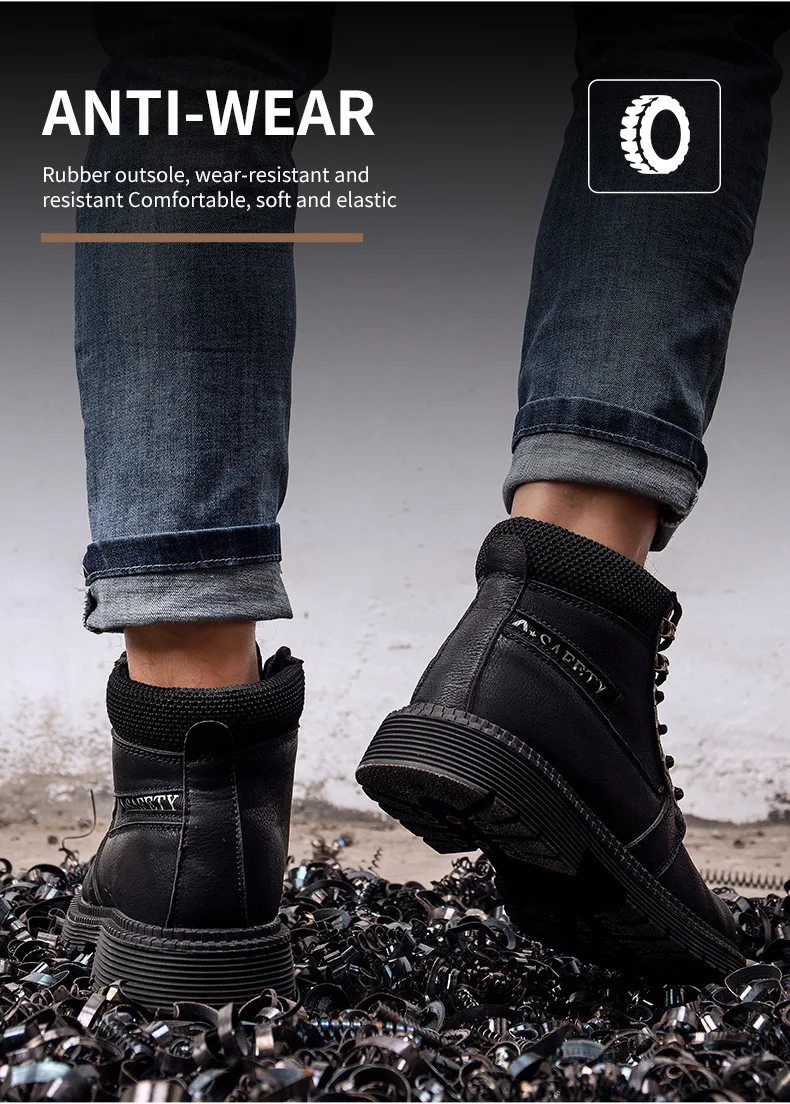 Ботинки мужские рабочие, кожаная защитная обувь, непробиваемые Боти...