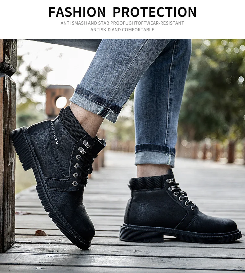 Мужские зимние кожаные ботинки Xiaomi, мужские рабочие ботинки со стальным носком, непробиваемые защитные ботинки мартинсы, защитная обувь