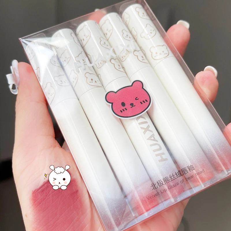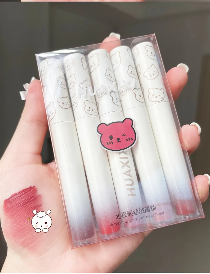 5 шт. набор глянцевых губ с полярным медведем, блеск для губ, грязь для губ, матовая глянцевая сексуальная губная помада, водостойкий пигмент для макияжа в сильной коробке TSLM1
