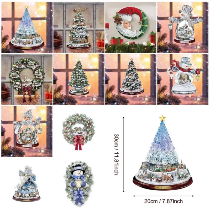 Вращающаяся скульптура рождественской елки, наклейки на окна, рождественские украшения, зимние рождественские наклейки для дома
