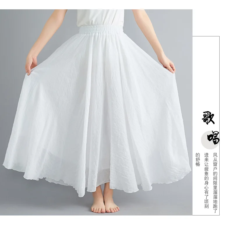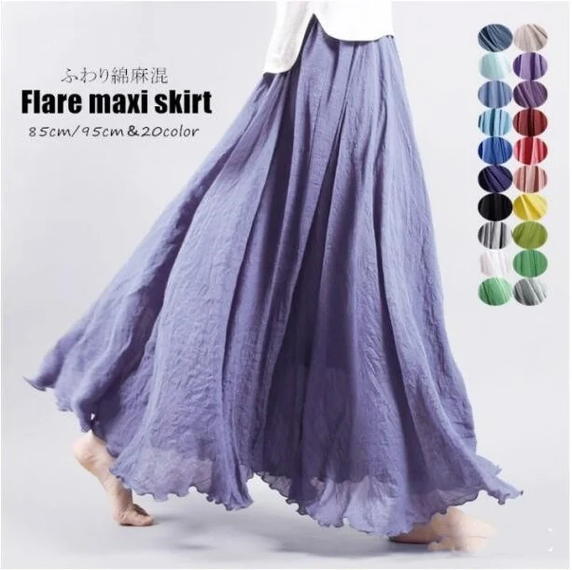 Женская длинная юбка из льна и хлопка, винтажная пляжная плиссированная юбка с эластичной талией в стиле бохо, 121933WBA, Лето Юбка Макси