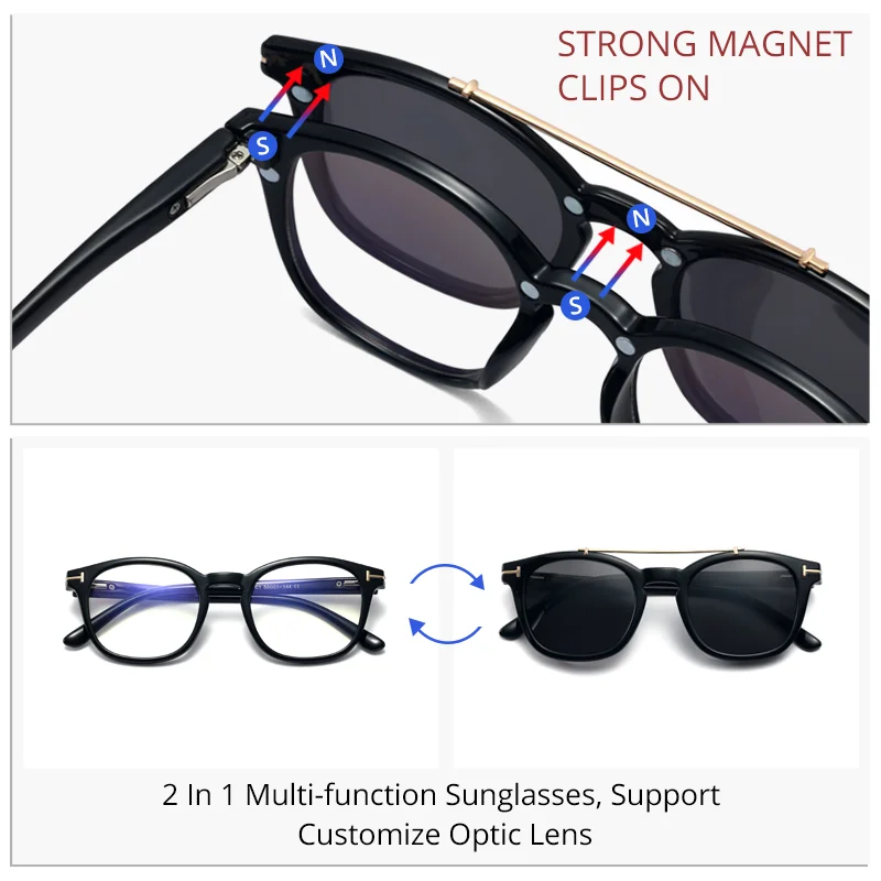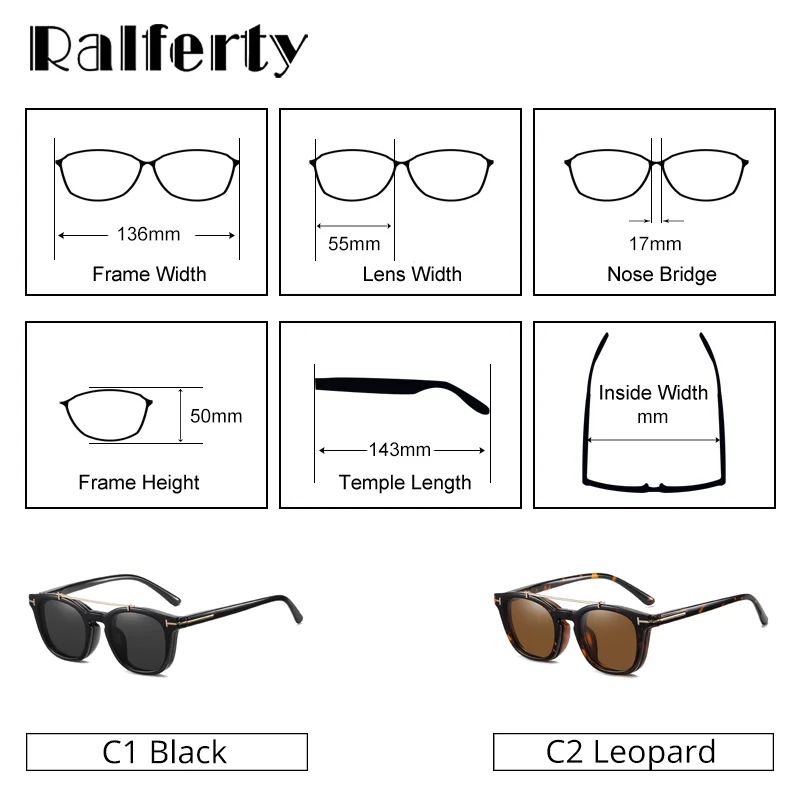 2 в 1, магнитные солнцезащитные очки Ralferty, женские, квадратные,...