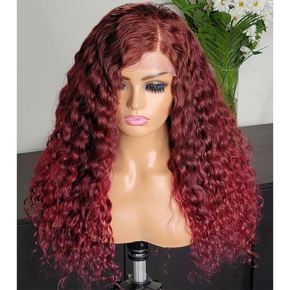 26 дюймов длинный 99J винно-красный кудрявый без клея синтетический...