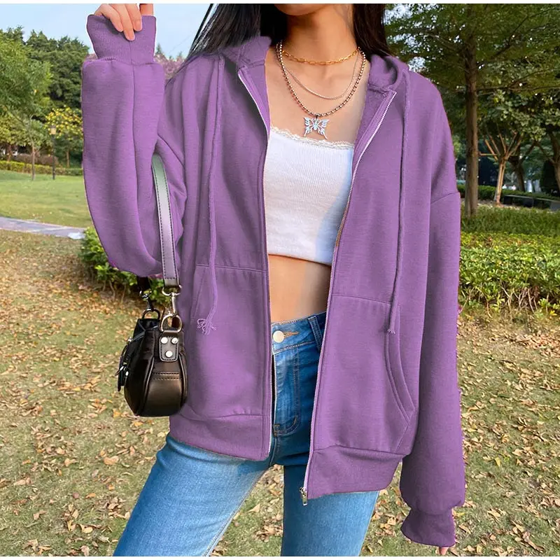 Женские толстовки на молнии в Корейском стиле, винтажная однотонная коричневая Толстовка большого размера с рукавами и капюшоном, Y2K, женская верхняя одежда, повседневные большие пальто